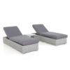 Aiamööblikomplekt ARIO 2 lamamistooli ja laud, hall. Lamamistooli helehall textilene iste laseb hästi õhku läbi, kuivab kiiresti ja seda on lihtne hooldada. Toolide ja laua raamid on valmistatud terasest ja viimistletud halli pulbervärviga. Seljatugi on võimalik panna horisontaalsesse asendisse või valida sobiv kaldenurk 4-positsioonis. Laua mõõdud on 43x43xH40cm, lauaplaat: must karastatud klaas. Lamamistooli mõõdud on 63x187xH40cm. Istmeosa pikkus 111cm, seljatoe pikkus 76cm. Kaalupiirang 100kg. HOIUSTAMINE: suvehooaja lõppedes soovitame aiamööblit hoiustada siseruumides. Puhastage ja kuivatage mööbel enne hoiule panekut. Kasutage hoiustamiseks kuiva ning hea ventilatsiooniga ruumi.