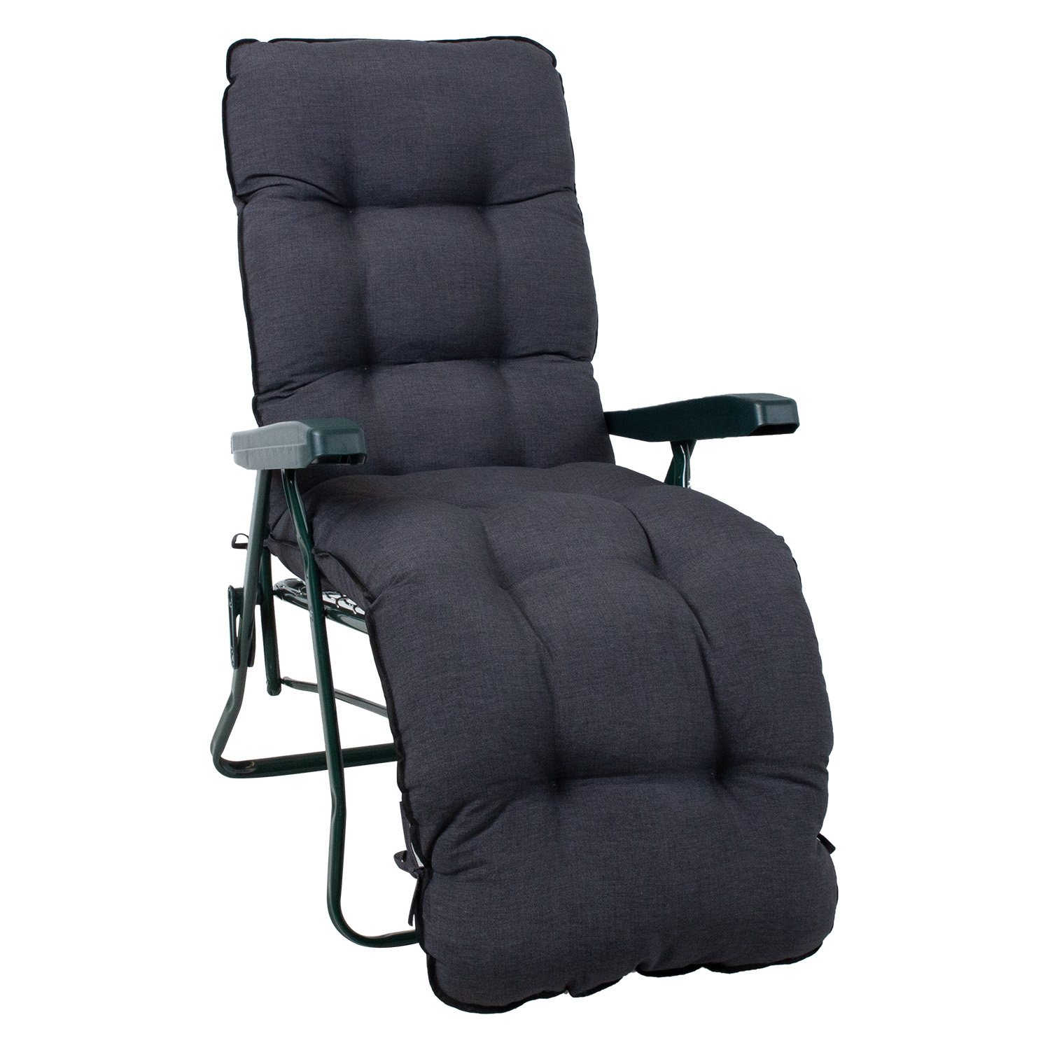 Lamamistooli raam BADEN-BADEN ilma istmepadjata. Tooli raam on valmistatud metallist ja viimistletud rohelise pulbervärviga. Istme ja seljatoe toestuseks on siksak vedrud. Lamamistooli selja- ja jalatugi on reguleeritav. Jalatugi liigub seljatoega sünkroonis. Seljatoe reguleerimiseks tõstke käetoed üles, valige sobiv asend ja fikseerige käetoed. Võimalik on valida viie erineva positsiooni vahel. Kokkupanduna on tooli lihtne kaasa võtta või hoiustada. Tooli üldmõõdud on 57x86xH100cm. Istme laius 47cm, istme sügavus 50cm, istme kõrgus 43cm. Kaalupiirang 100kg. Tooli mõõdud kokkupanduna 57x88x14cm.