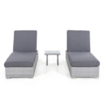 Aiamööblikomplekt ARIO 2 lamamistooli ja laud, hall. Lamamistooli helehall textilene iste laseb hästi õhku läbi, kuivab kiiresti ja seda on lihtne hooldada. Toolide ja laua raamid on valmistatud terasest ja viimistletud halli pulbervärviga. Seljatugi on võimalik panna horisontaalsesse asendisse või valida sobiv kaldenurk 4-positsioonis. Laua mõõdud on 43x43xH40cm, lauaplaat: must karastatud klaas. Lamamistooli mõõdud on 63x187xH40cm. Istmeosa pikkus 111cm, seljatoe pikkus 76cm. Kaalupiirang 100kg. HOIUSTAMINE: suvehooaja lõppedes soovitame aiamööblit hoiustada siseruumides. Puhastage ja kuivatage mööbel enne hoiule panekut. Kasutage hoiustamiseks kuiva ning hea ventilatsiooniga ruumi.