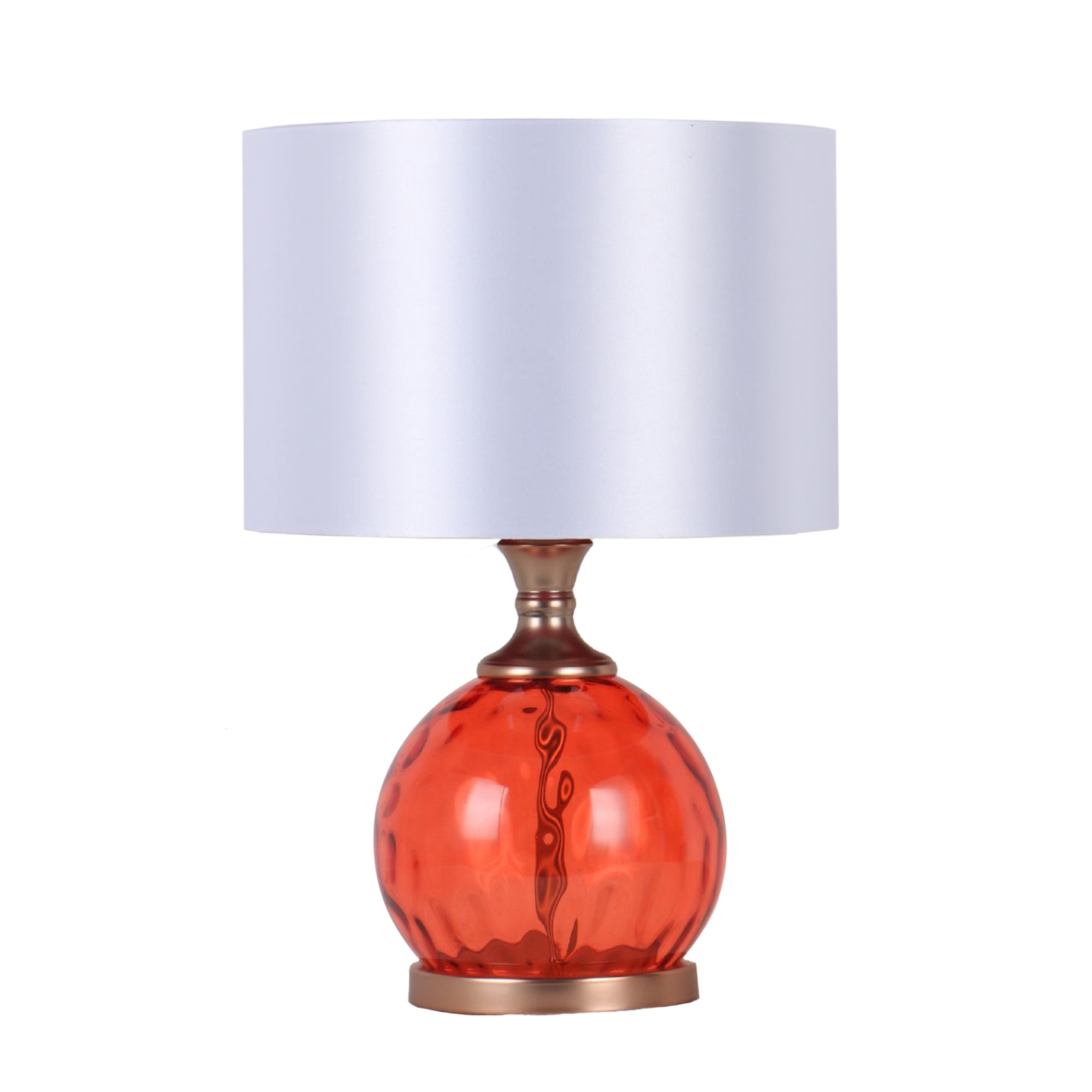 Laualamp LUXO, H45cm, punane klaas, kuppel: valge/oranž satiinsiid