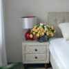 Laualamp LUXO H56cm, jalg: valge, kuppel: telliskivipunane. Lambipirni sokkel E27, max. 60W.