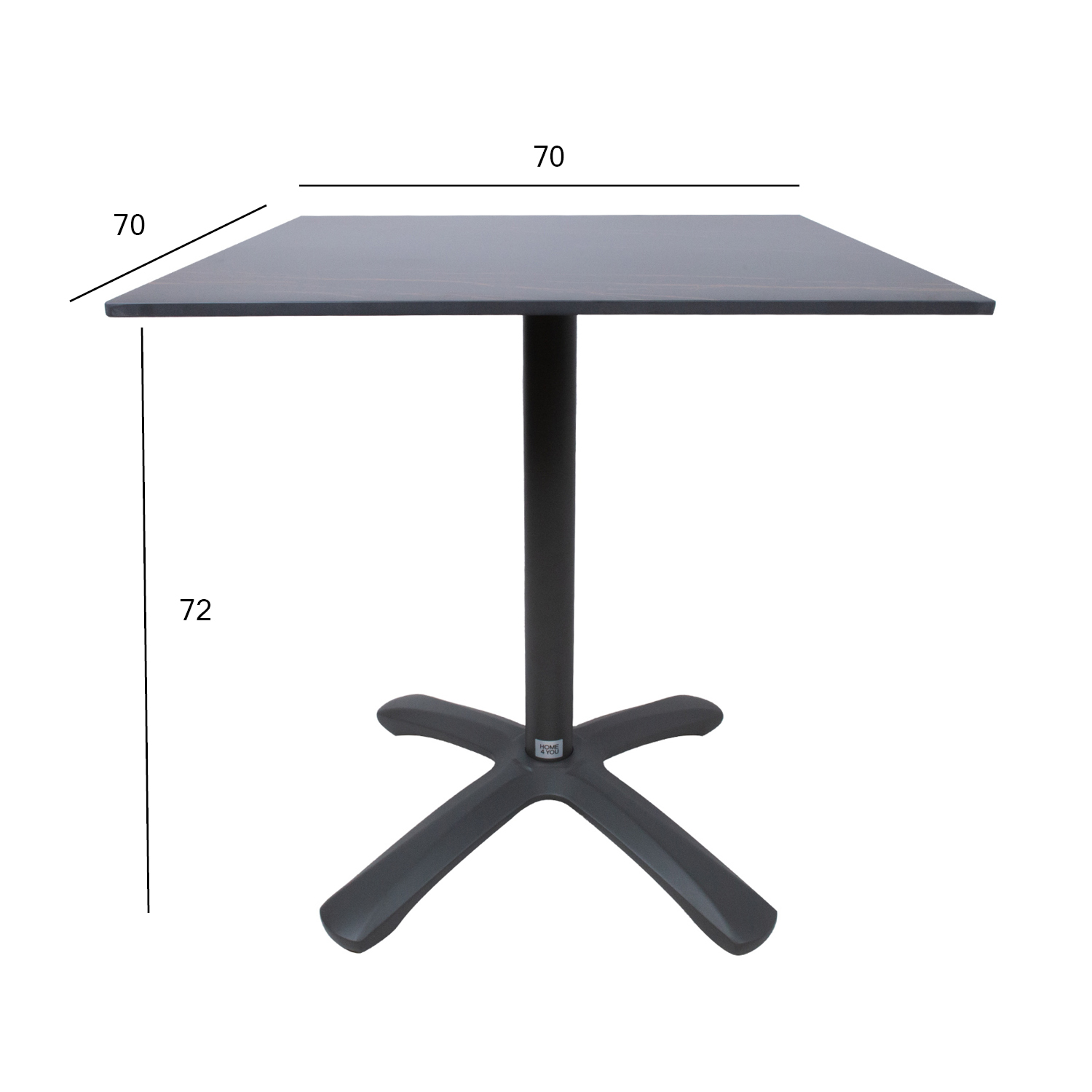 Alumiiniumist lauajalg on viimistletud halli pulbervärviga. Lauajala tugiposti mõõdud D60x1,5mm, 4-haruline jalg 68x68cm, lauaplaadi alusrist 48x48cm.
