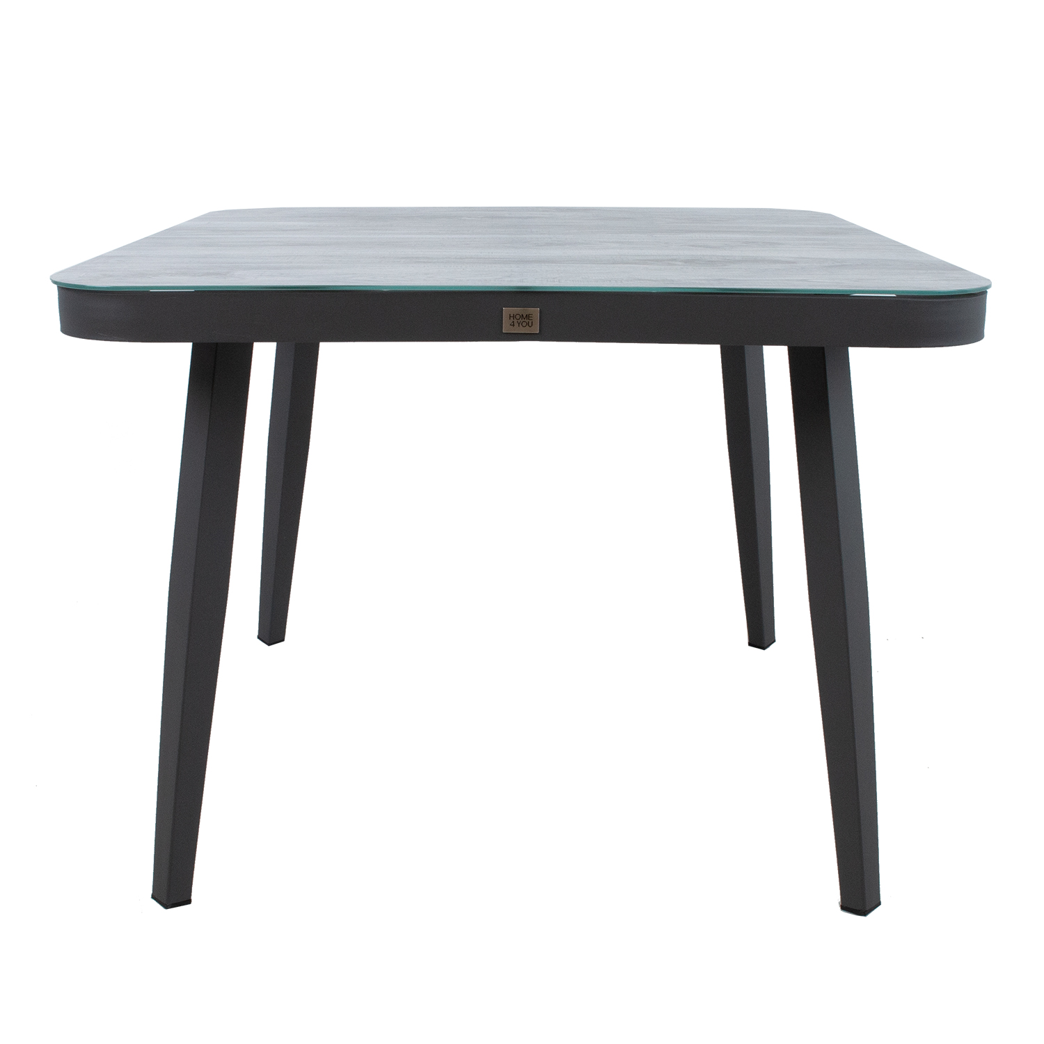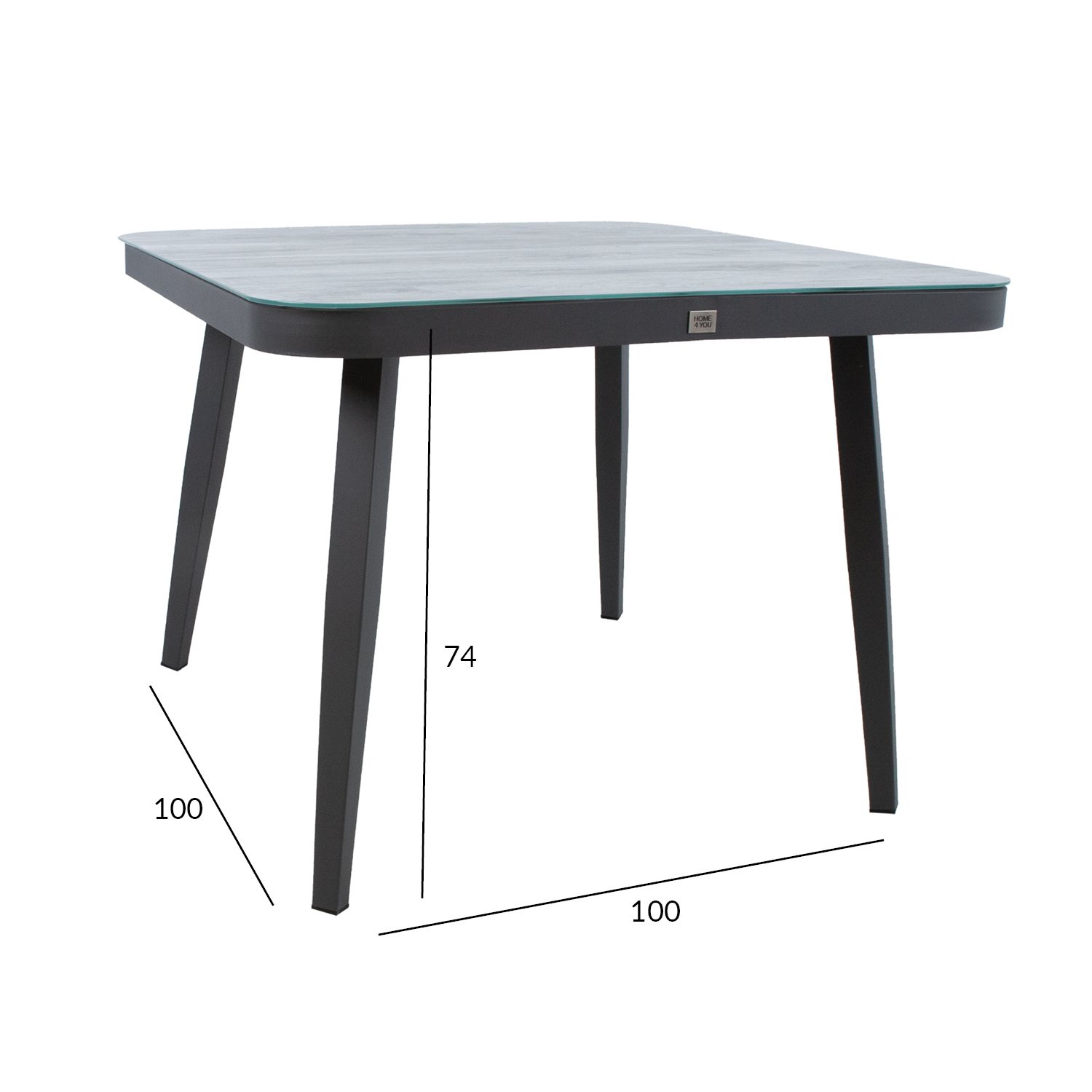 Lauaplaat: 5mm hall dekoorklaas. Jalad ja raam on valmistatud alumiiniumist ka viimistletud halli pulbervärviga. Toode on muutlikes ilmastikutingimustes hästi vastupidav ja lihtsalt hooldatav.