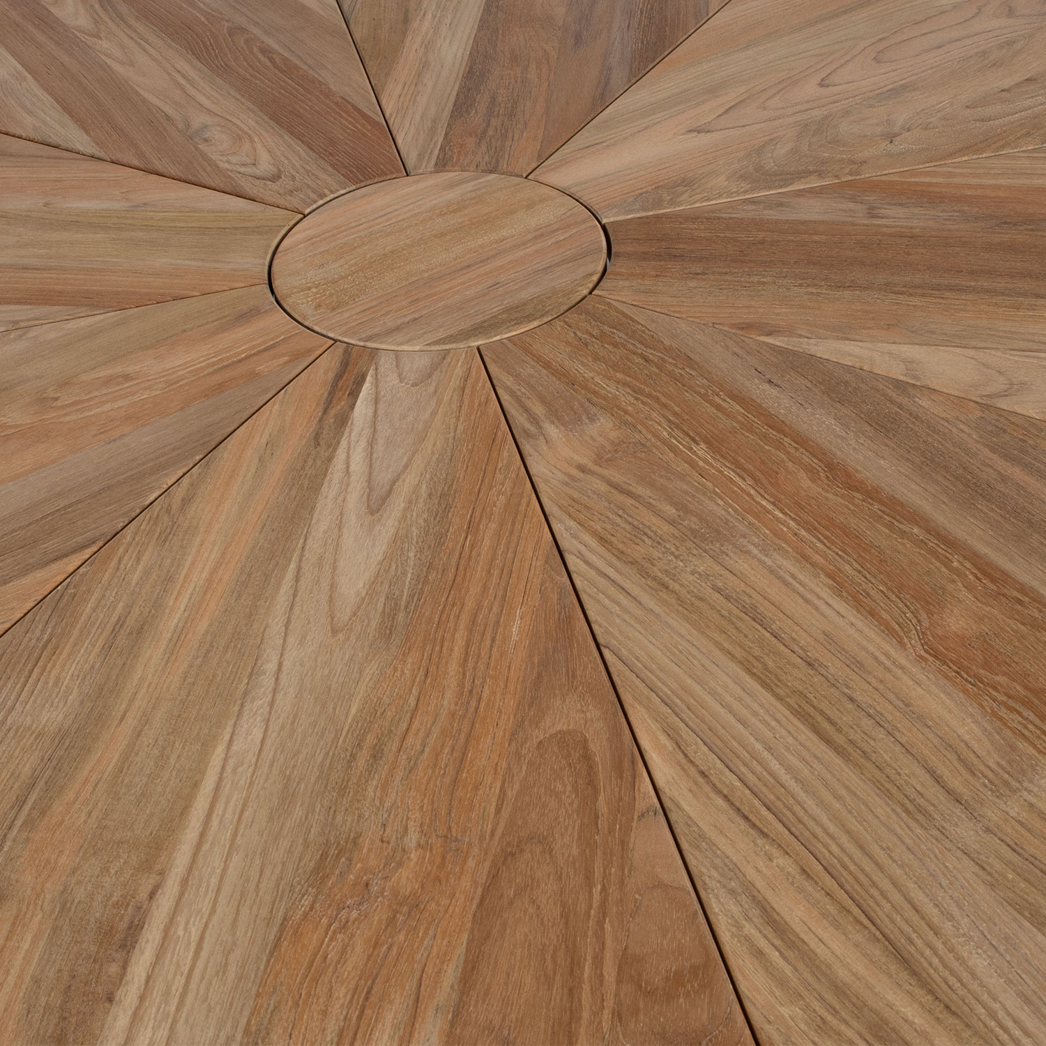 Lauaplaat on valmistatud taaskasutatud tiigipuidust.