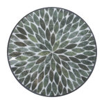 Keraamiline lauaplaat on kaunistatud roheliste lehemotiividega.