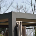 Lebola tugev põhikonstruktsioon on valmistatud terasest ja viimistletud tumepruuni pulbervärviga. Polüesterkangast katus ja külgkardinad pakuvad mõnusat varju päikese eest.