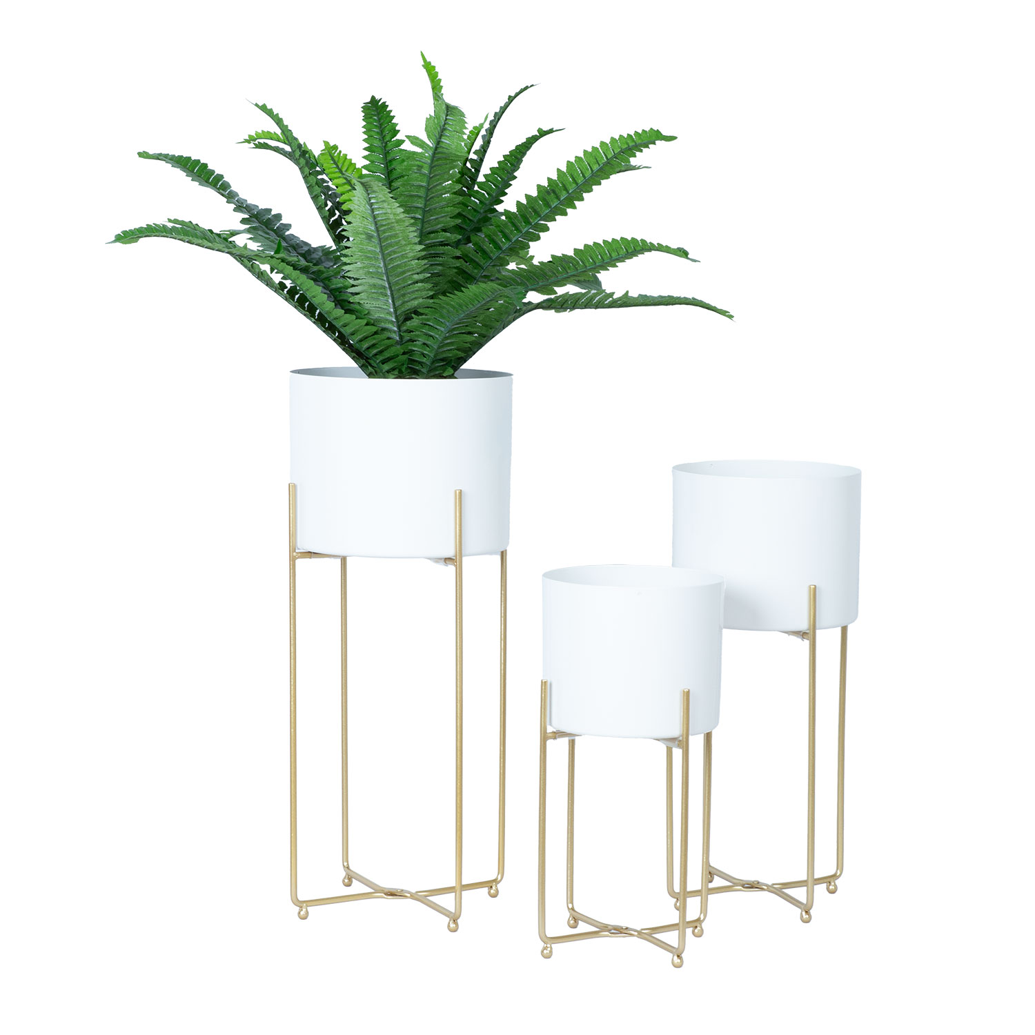 Lillepostament DEIA WHITE L 24,5×23,5xH57cm, valge/kuldne