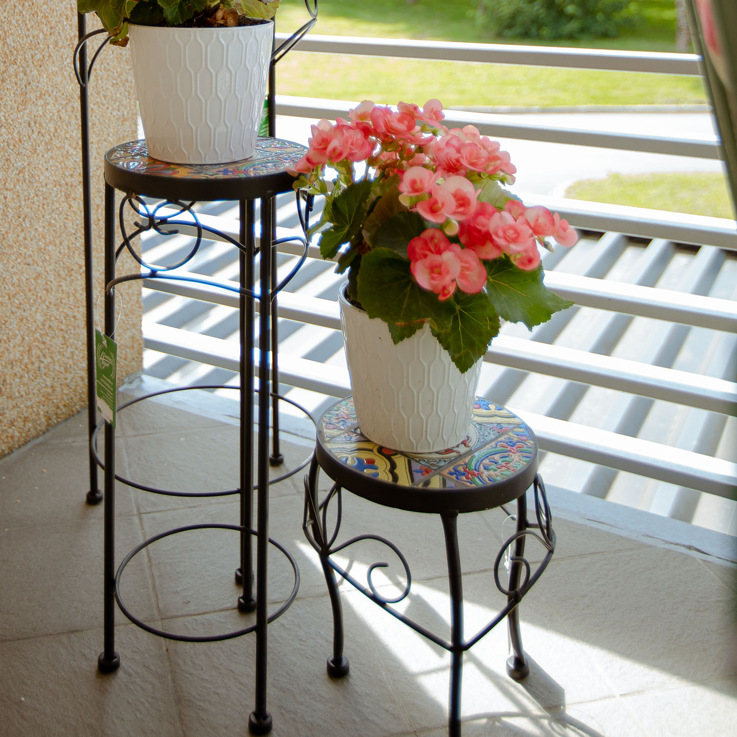 Lillepostament MOROCCO D20xH50cm. Pealmine mosaiikplaat on kaetud Morocco stiilis värviliste keraamiliste plaatidega. Metallist alusraam ja jalad on viimistletud musta pulbervärviga. Toode sobib kasutamiseks nii sise- kui väli tingimustes.