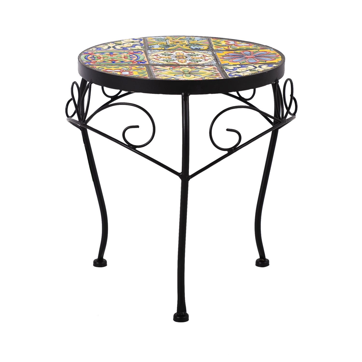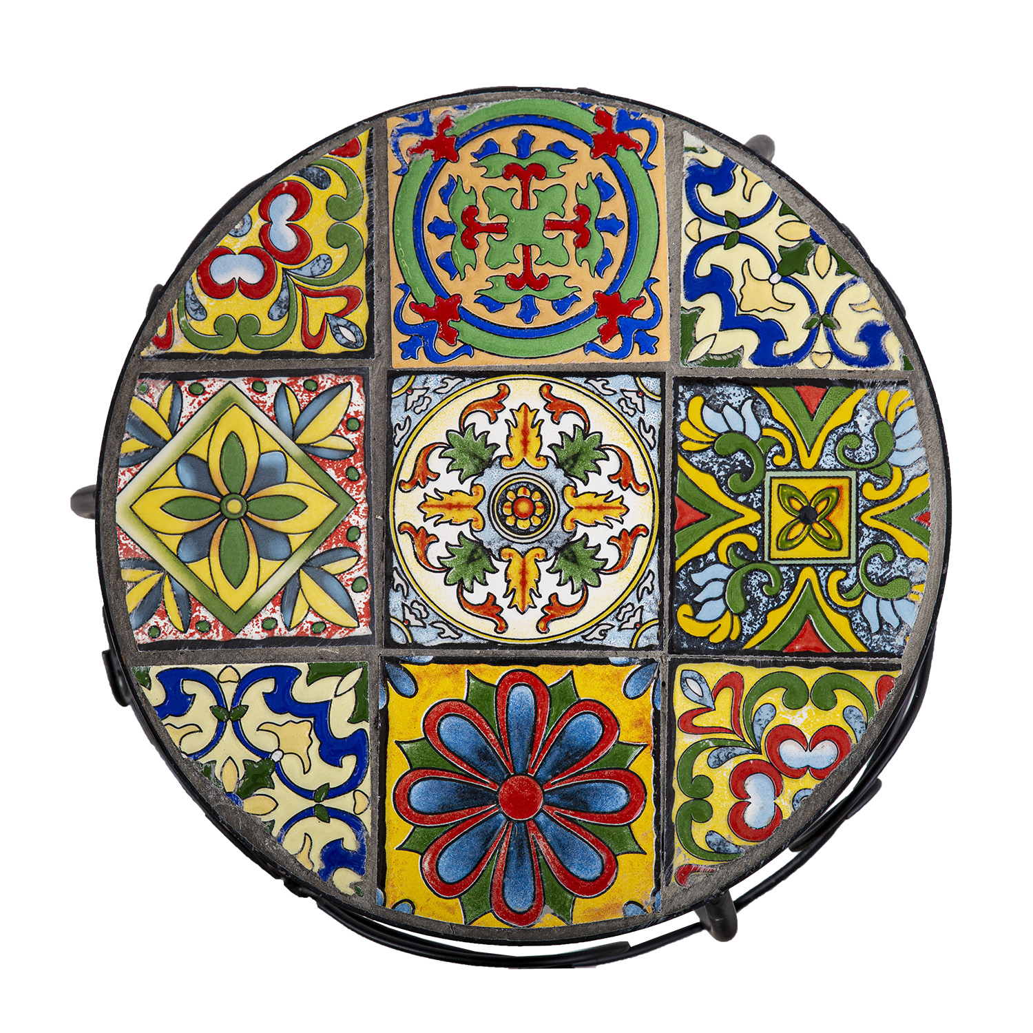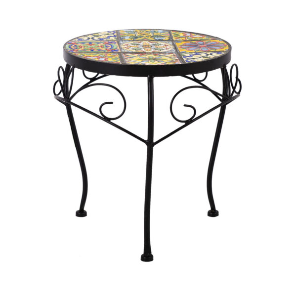 Lillepostament MOROCCO D30xH35cm. Pealmine mosaiikplaat on kaetud Morocco stiilis värviliste keraamiliste plaatidega. Metallist alusraam ja jalad on viimistletud musta pulbervärviga. Toode sobib kasutamiseks nii sise- kui väli tingimustes.