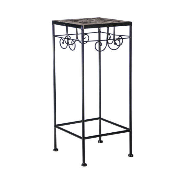 Lillepostament MOSAIC 30x30xH70cm. Pealmine mosaiikplaat plaat on kaunistatud pruunides ja hallides toonides keraamiliste plaatidega. Metallist alusraam ja jalad on viimistletud musta pulbervärviga. Toode sobib kasutamiseks nii sise- kui väli tingimustes.