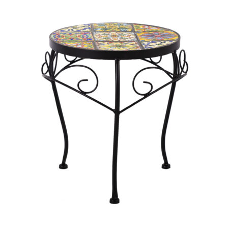 Lillepostament MOROCCO D30xH35cm. Pealmine mosaiikplaat on kaetud Morocco stiilis värviliste keraamiliste plaatidega. Metallist alusraam ja jalad on viimistletud musta pulbervärviga. Toode sobib kasutamiseks nii sise- kui väli tingimustes.