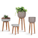 Lillepott SANDSTONE puidust jalgadega D40xH56,5cm, pruun