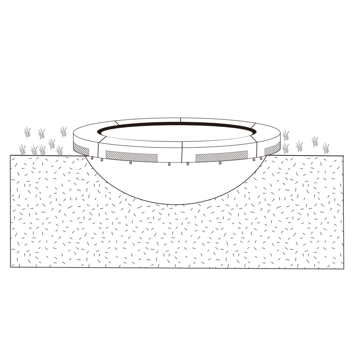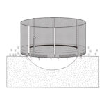 Turvavõrk D305cm maapealsele batuudile, postidega, must. Turvavõrk on valmistatud mustast polüestervõrgust. Sissepääsuava on tõmblukuga suletav. Komplekti kuulub kuus vahtplastist pehmendustega tugiposti. Postid on valmistatud galvaniseeritud terastorust D25,4×1,2mm. Võrgu üldkõrgus on 208cm, kõrgus batuudi äärest on 184cm. Turvavõrk sobib HOME 4 YOU 305cm batuudile koodiga 19416. HOIUSTAMINE: suvehooaja lõppedes eemaldage turvavõrk batuudi küljest ja hoiustage kuivas hea ventilatsiooniga ruumis. Puhastage ja kuivatage võrk enne hoiule panekut.