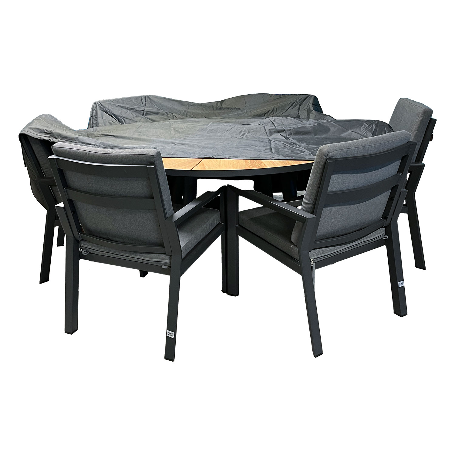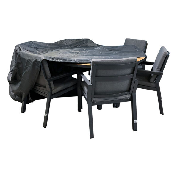 TÄHELEPANU! Mööblikate aitab pikendada mööbli eluiga ning on turvaline kaitse välimööblile, kuid ei taga samasuguseid tingimusi nagu siseruumides hoiustamine. Tugeva vihma korral võivad kattega kaetud mööblile koguneda veelombid. Eemaldage kogunenud vesi esimesel võimalusel. Peske katet vastavalt tootele kinnitatud hooldusjuhendile. Mööblikatte kasutamine ei ole sobiv lahendus aiamööbli ületalve õues hoidmiseks.