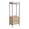 Esikuriiul LAVINIA 2-sahtli ja stangega 52x40xH169cm, saar/must. Riiuli raam on valmistatud metallist ja viimistletud musta pulbervärviga. Riiulid sahtlipaneelid on valmistatud saaredekooriga melamiinplaadist.
