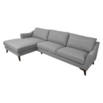 Nurgadiivan BIRGIT vasak nurk, hall. Diivani karkass on valmistatud liimpuidust, vineerist ja MDF plaadist. Istumismugavuse tagab sik-sak vedrustus ja vastupidavast poroloonist polsterdus (PU 30kg/m³). Lahtised seljatoepadjad on täidetud mahulise polüesterkiuga. Diivan on üleni kaetud polüesterkangaga. Seljatoepadjad kinnituvad seljatoe külge takjaribaga. Diivani üldmõõdud on 286×160/90xH86cm. Istme laius 88+177cm, istme sügavus 56/128cm, istme kõrgus 47cm. Käetoe kõrgus maast 64cm, käetoe laius 10cm. Seljatoepadja mõõdud 89x50x20cm / 3tk. Diivanil on tumedad puidust jalad H18cm.