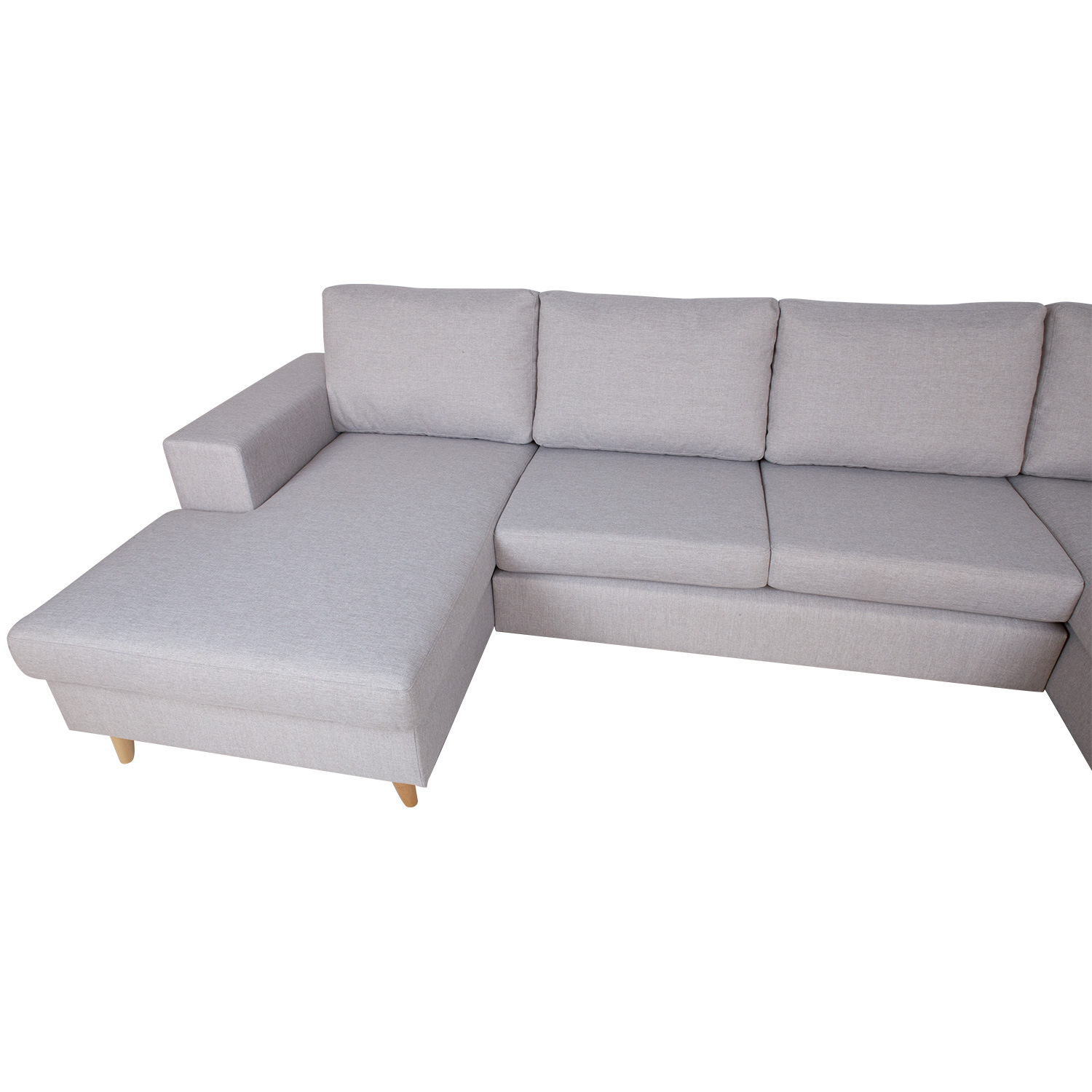 Suur U-kujuline nurgadiivan võlub oma selge ja neutraalse disainiga ning sobitub suurepäraselt erinevas stiilis sisekujundusega. Mõnusate pehmete patjadega diivan on parim koht lõõgastumiseks ja mahutab vajadusel palju istujaid.