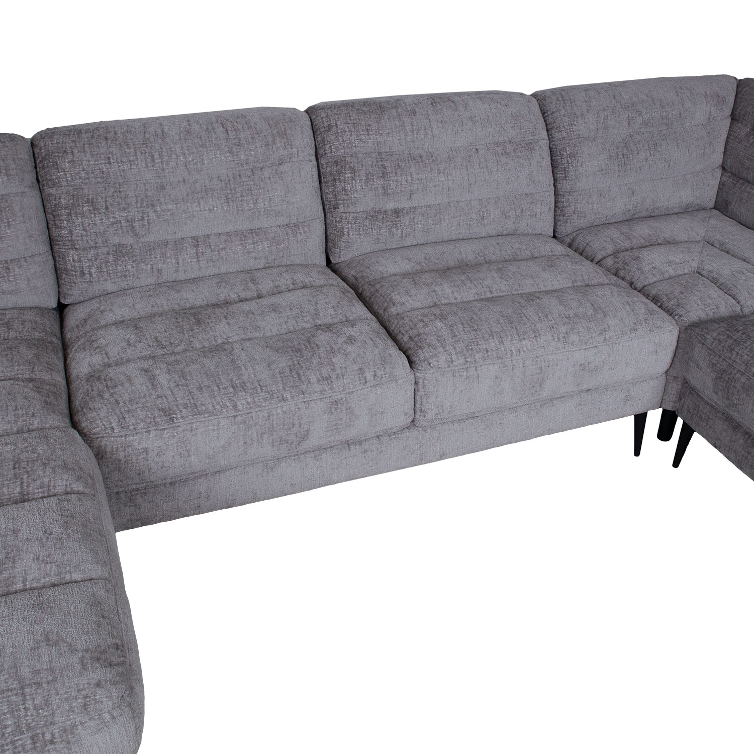 Nurgadiivan KRISTY parem + vasak nurk, hall. Diivani karkass on valmistatud täispuidust vineerist ja MDF plaadist. Istumismugavuse tagab sik-sak vedrustus ja vastupidavast poroloonist polsterdus (PU 30kg/m³). Diivan on üleni kaetud kvaliteetse polüesterkangaga. Diivan koosneb 4-st osast. Eestvaates vasaku käetoega pika nurgaosa mõõdud on 99x160xH80cm. 2-kohalise ilma käetugedeta osa mõõdud on 143x97xH80cm. 1-kohalise nurga mõõdud on 97x97xH80cm. Eestvaates parema käetoega 2-kohalise osa mõõdud on 168x97xH80cm. Diivani üldmõõdud on 339×160/265xH80cm. Istme sügavus 60cm, istme kõrgus 49cm. Käetoe kõrgus maast 60cm, käetoe laius 28cm. Diivanil on mustad metallist jalad H17cm.