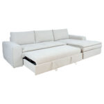Ruumikas ja pehme diivan on ideaalne mõnusa filmiõhtu korraldamiseks või lihtsalt kodus lõõgastumiseks. Diivan istme all on väljatõmmatav osa, mis pakub jalgadele mõnusat tuge. Lahtikäiv osa jääb istmest pisut madalamale tasapinnale. Diivanit saab vajadusel kasutada lisamagamiskohana, kuid eelkõige on väljatõmmatav osa mõeldud jalgade toetamiseks. Seljatoepadjad on lahtised.
