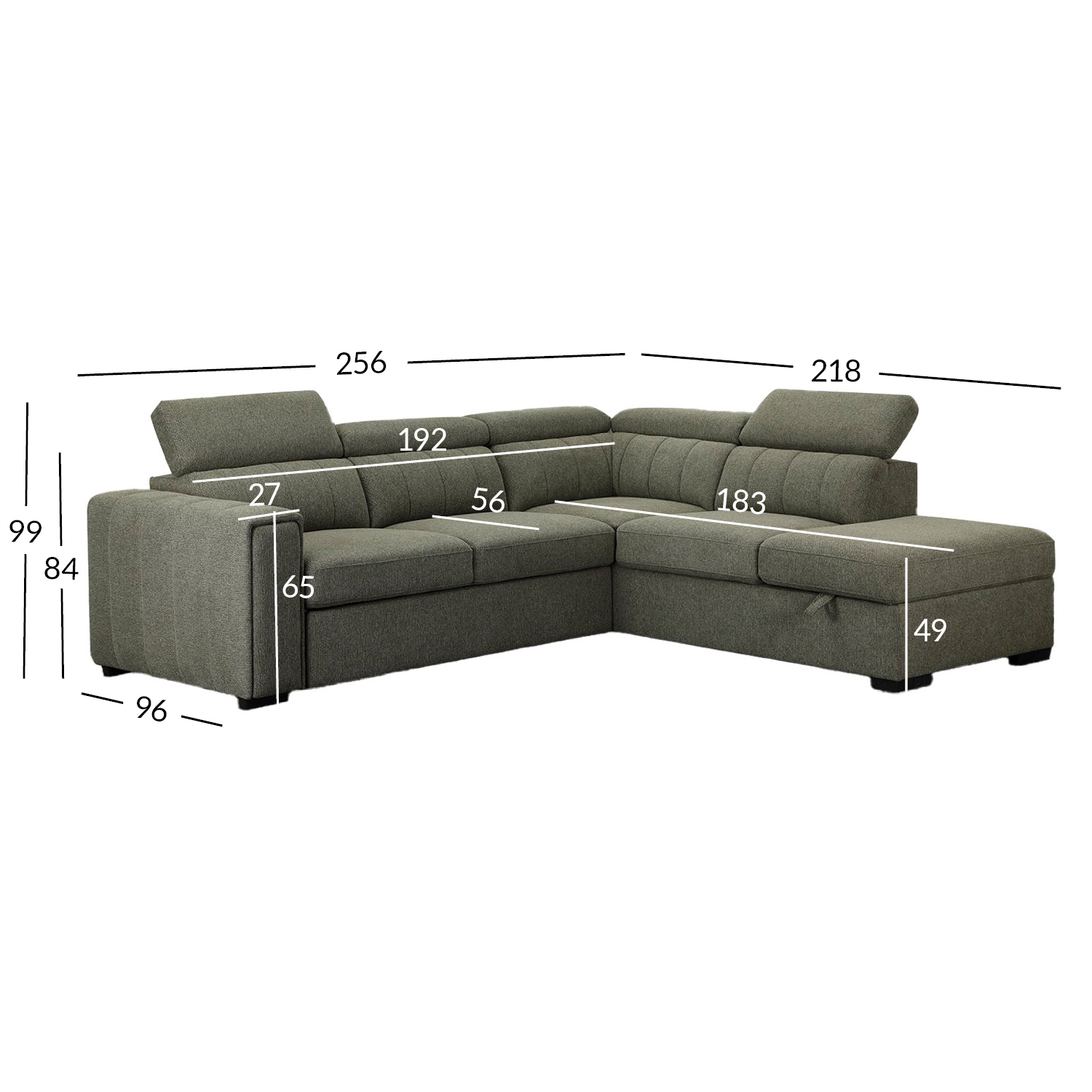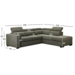Diivani üldmõõdud on 256×96/218xH84/99cm.