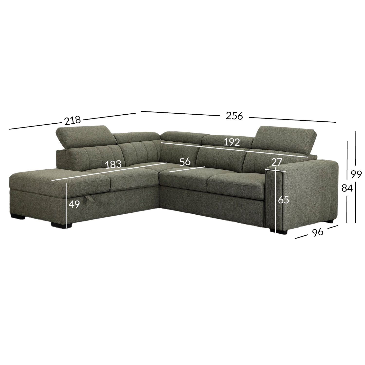 Mugav ja praktiline diivanvoodi võlub oma mitmekülgsusega. Reguleeritava kõrgusega seljatoed ja käetoe sisse peidetud topsihoidja pakuvad lisamugavust. Diivani nurgaosa all on panipaik.