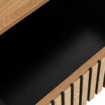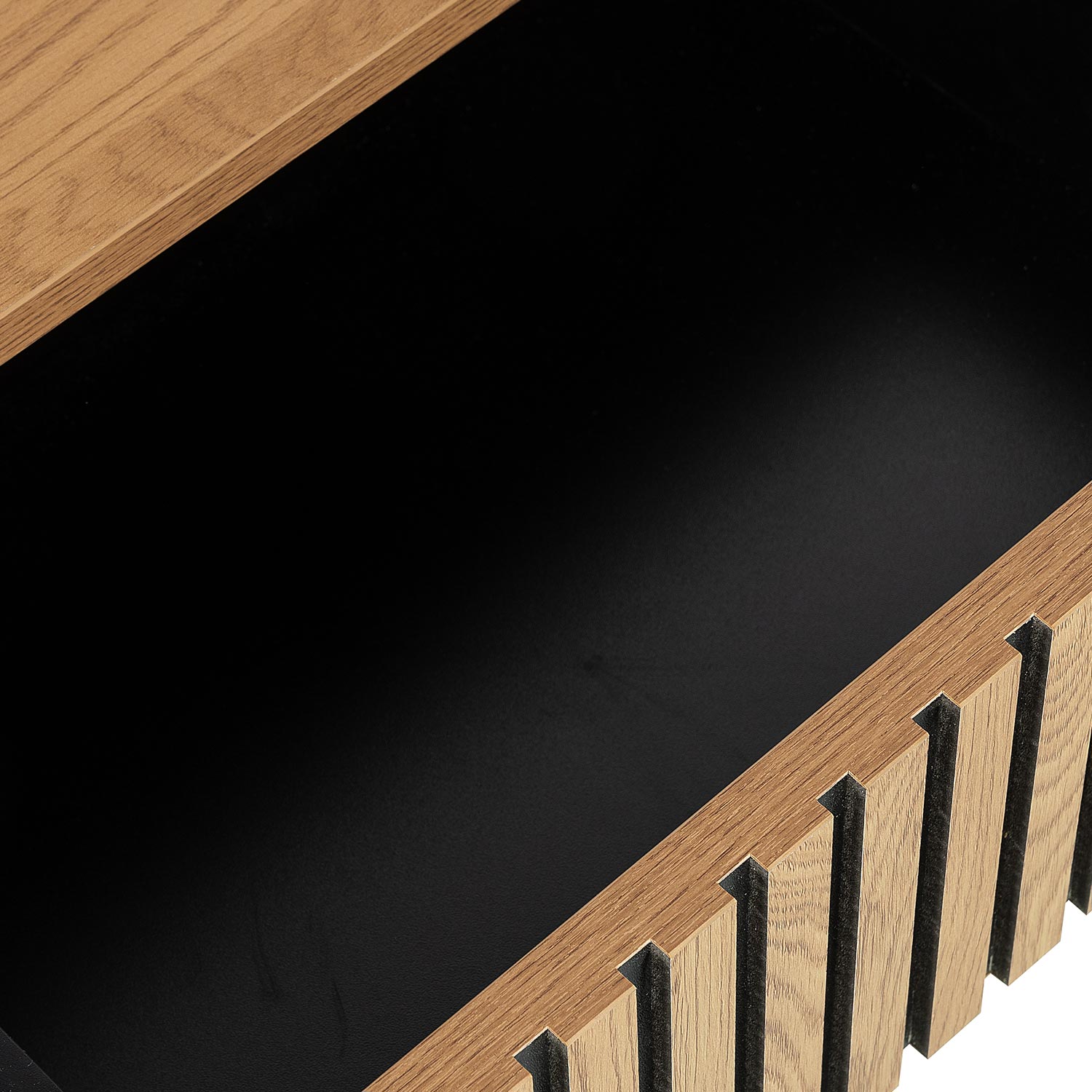 Sahtli esipaneeli kaunistavad kitsad tammevärvi MDF liistud mustal taustal.