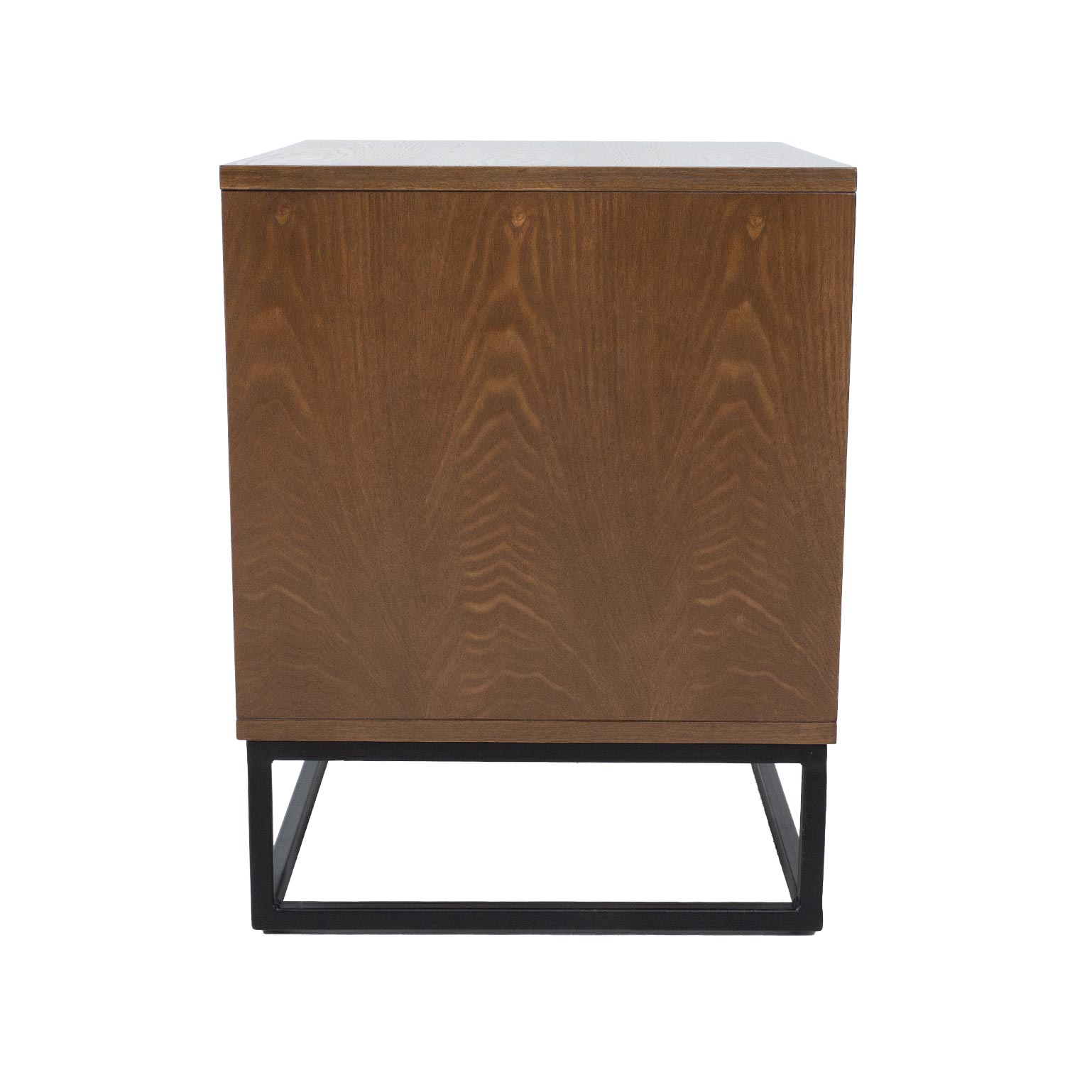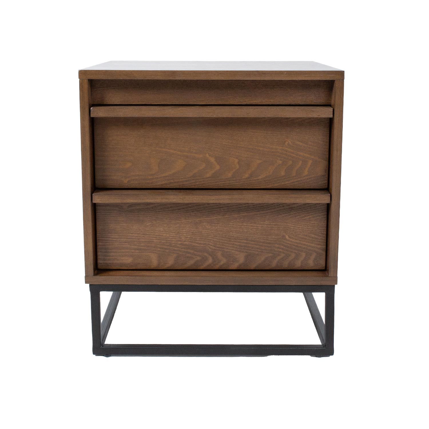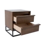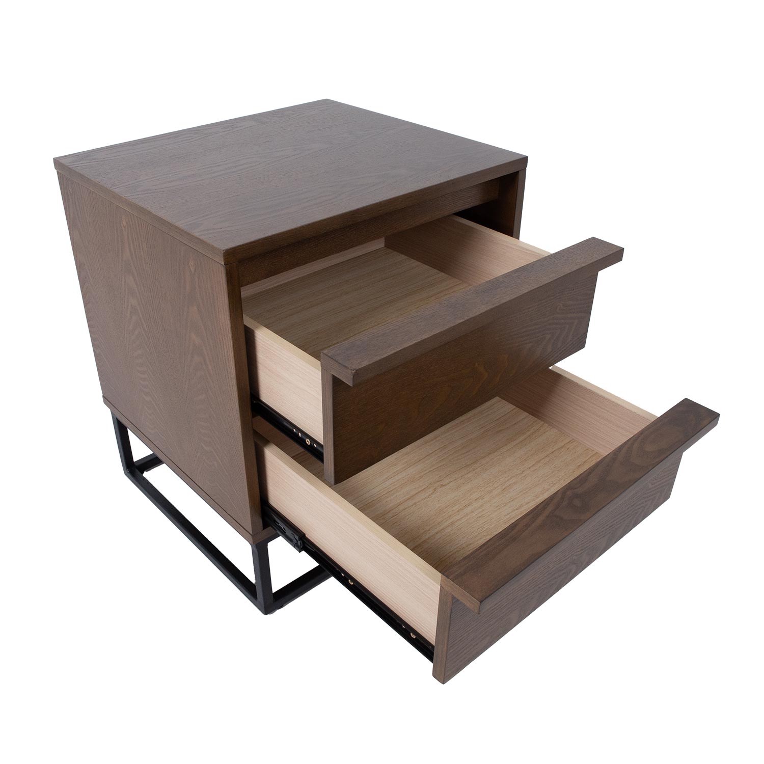 Öökapp VOKSI 2 sahtliga 40x45xH52cm, pähkel. Mööbliplaadist valmistatud öökapp on naturaalse saarespooniga ja viimistletud tumeda pähklitoonis lakiga. Öökapi metallist alusraam on viimistletud musta pulbervärviga.