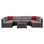 Komplekti kuulub 6 istmepatja 66x66x11cm, 6+2 seljatoepatja 66x32x11cm, 54x32x11cm, 2 punast diivanipatja 36x39cm. Kattematerjal: hallikasbeež polüesterkangas. Patjade täidis: poroloon / kiudpolüester. Padjakatted on eemaldatavad ja pestavad.