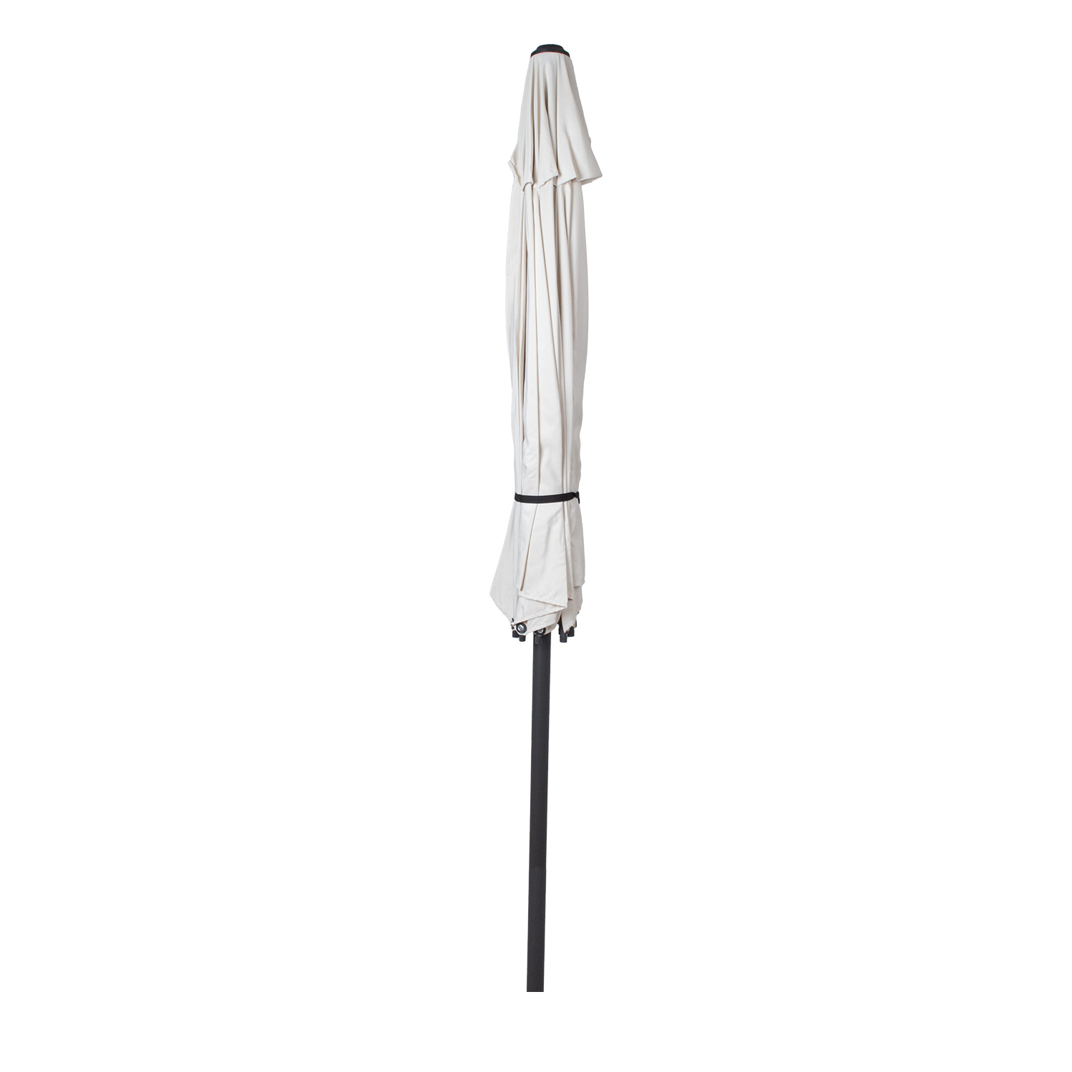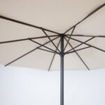 Päikesevari LYON D3m bee˛. Päikesevarju kate on valmistatud bee˛ist polüesterkangagast 180g/m². Varjul on 8 terasribi 12x18x0,42mm ja alumiiniumist jalg D48x0,75mm. Ribid ja jalg on kaetud tumehalli pulbervärviga. Päikesevari on vändaga avatav. Päikesevarjualus ei kuulu komplekti. HOIATUS: toode ei ole mõeldud kasutamiseks tugeva tuule või vihma korral. Ärge jätke avatud päikesevarju järelevalveta. HOOLDUS: hoiustage kuivas, hea ventilatsiooniga ruumis. Enne päikesevarju hoiule panemist laske sel täielikult kuivada.