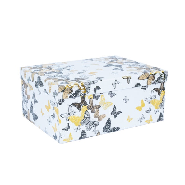 Pappkarp DIANA-2 kaanega 35x27xH15,7cm, valgel põhjal liblikad