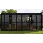 Polükarbonaatklaasist lükandsein varikatuse MIRADOR-111 4m küljele. Seinapaneeli mõõdud on 3704x2365mm. Horisontaalposti mõõdud on 95×73,9×1,5x1852mm/53×35,5×1,5x917mm/58x35x1,5x917mm. Küljeposti mõõdud on 46,5x39x1,5x2296mm. Polükarbonaatklaasist paneeli mõõt on 1080x645x3mm. Seinapaneeli raam on valmistatud alumiiniumist ja kaetud tumehalli pulbervärviga.