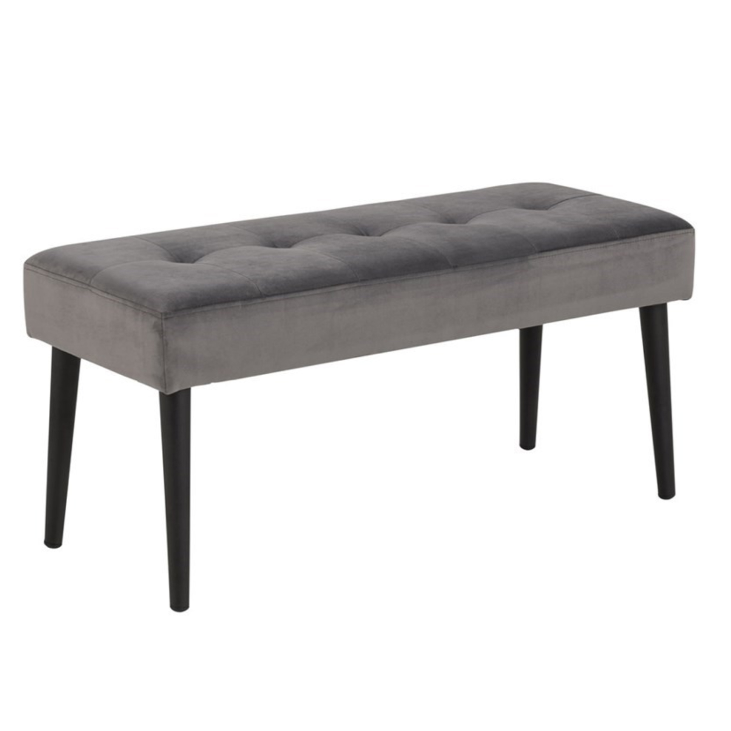 Pink GLORY 95x38xH45cm. Elegantne kaasaegse disainiga pink, mis annab teie koridorile, elutoale või magamistoale uue ilme. Detailid lisavad kangale struktuuri ja annavad sellele luksusliku tunde. Iste: sametkangas, värvus: tumehall. Jalad: metall, must. Kaalupiirang: 110kg. HOOLDUS: Hooldus piirdub tolmuimejaga ja plekieemaldamisega. Plekkide eemaldamisel tuleb olla ettevaatlik. Katsetage plekieemaldajaid esmalt vähem nähtaval alal ja tegutsege vastavalt tulemusele. Ärge kunagi kasutage lahusteid. Ärge asetage mööblit otsese päikesevalguse kätte. Aluse jaoks kasutage igapäevaseks puhastamiseks seebiveest kuivaks väänatud lappi. Rooste vältimiseks pühkige pind lapiga kuivaks. Ärge hõõruge pinda kõvade esemetega.