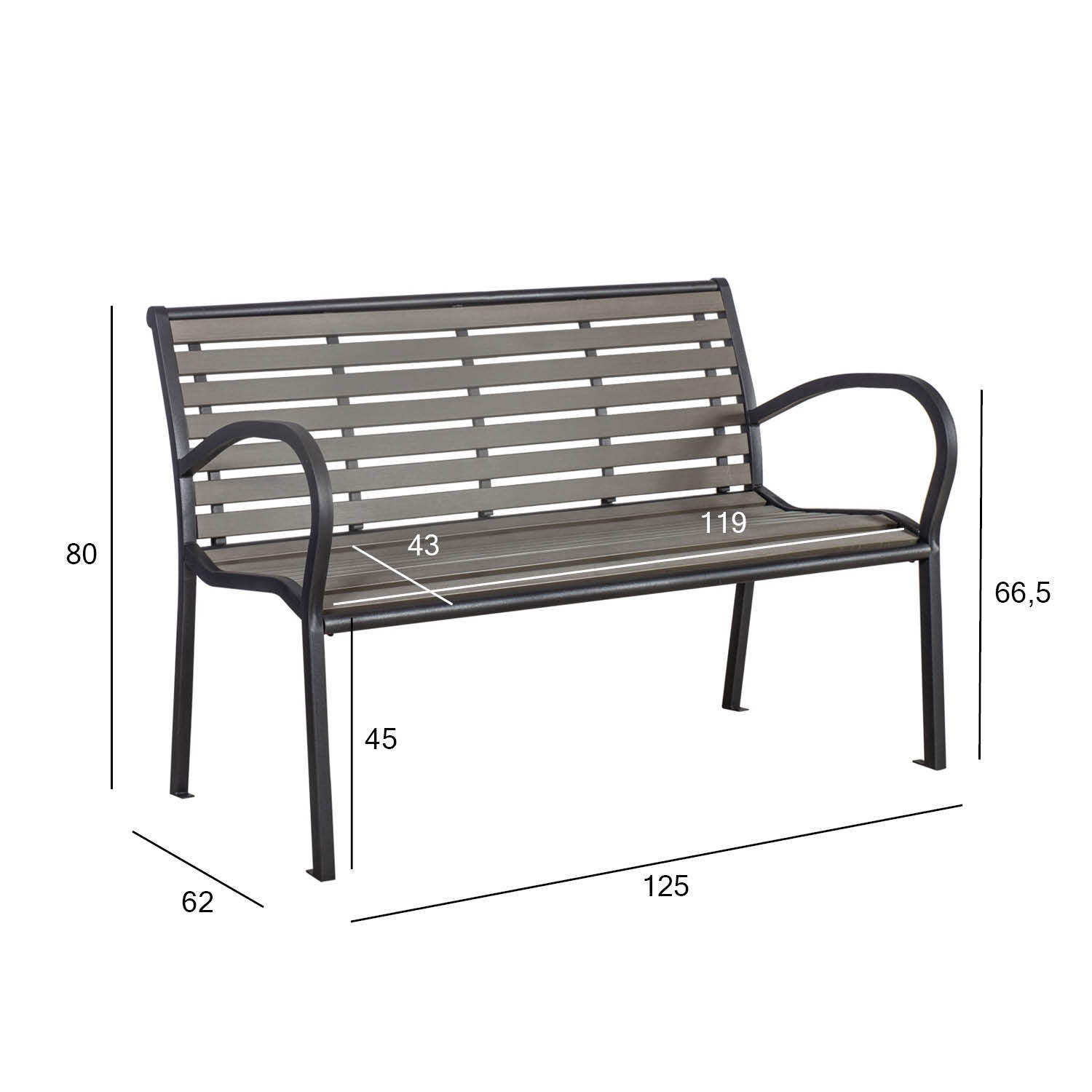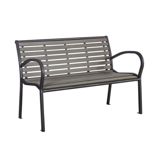 Pink VIOLA 125x62xH80cm, hall. Pingi terasraam on viimistletud tumehalli pulbervärviga, iste ja seljatugi on kaetud kunstpuidust liistudega. Pingi istmelaius on 119cm, istme sügavus 43cm, istme kõrgus 45cm, seljatoe kõrgus 41cm, käetoe kõrgus maast 66,5cm. Kaalupiirang 200kg. Toode on muutlikes ilmastikutingimustes hästi vastupidav ja lihtsalt hooldatav.