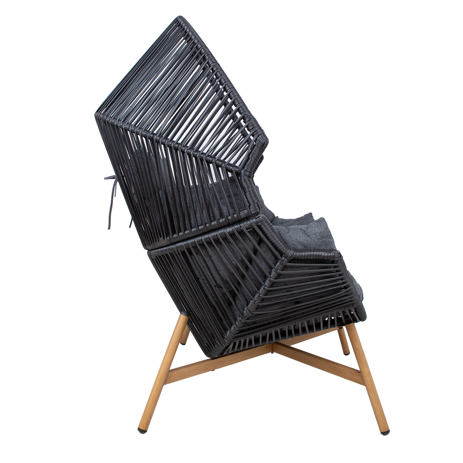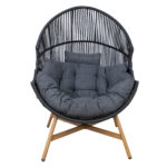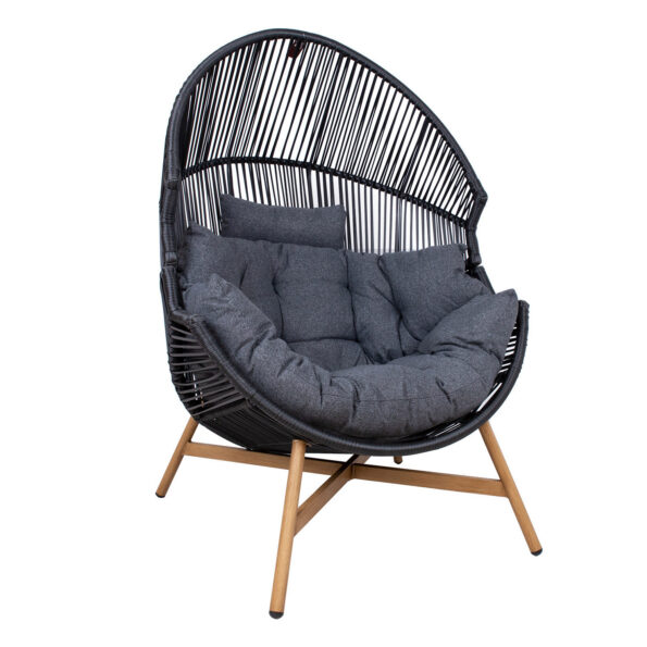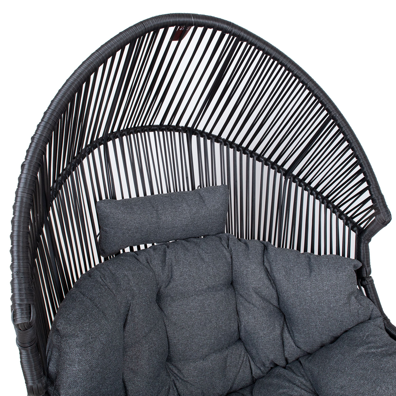 Kiiktool HELSINKI must. Kiiktool pakub mugava võimaluse aeg maha võtta ja lõõgastuda. Tooli istmeosa on kaetud musta plastikust nöörpunutisega. Komplekti kuuluvad pehmed ja mugavad padjad. Toolipadjad on kaetud tumehalli polüesterkangaga. Tooli alumiiniumist alusraam ja jalad on värvitud tiikpuidu tooni. Kiiktooli mõõdud on 84x102xH97cm.