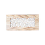 Hele männipuidust raam. Raami sees on valge läbikumav paberisarnane laustekstiil.