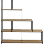 Maitsekas riiul, mis muudab ruumi stiilsemaks. Riiulil on asümmeetriline disain ja astmeline kuju. Raam ja alus: mattmust pulbervärvitud metall. Mõõdud on 135x35xH150cm. HOOLDUS: Kasutage seebiveest kuivaks väänatud lappi ja pühkige pind kuivaks. Vältige küürimispulbri või nailonkäsnade kasutamist, kuna need pleegitavad või kriimustavad materjali. Ärge hõõruge pinda kõvade esemetega.