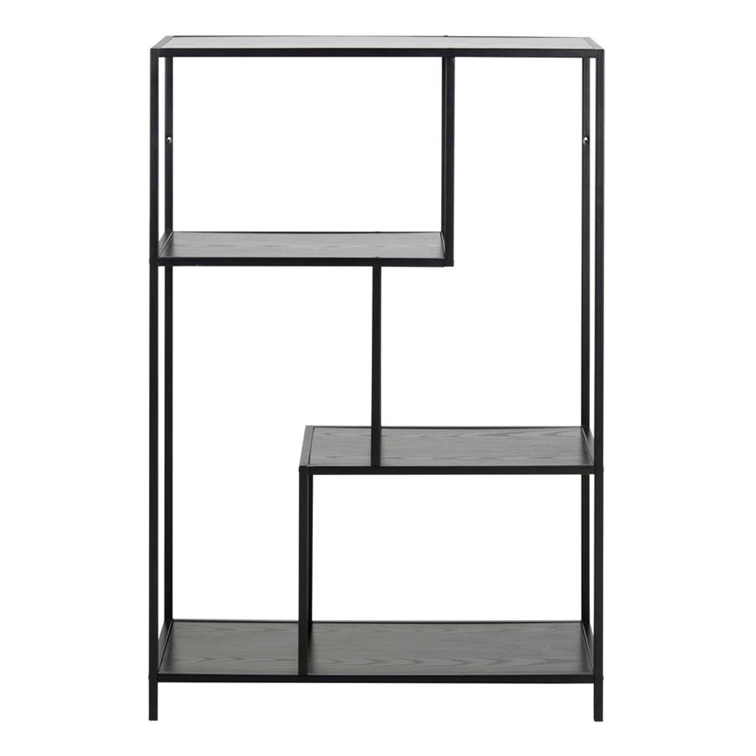 Riiul SEAFORD 77x35xH114cm, 3x, riiulid: must saare melamiin, raam: must metall