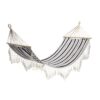 Rippkiik ROMANCE, punasetriibuline. Kiige lamamisosa on valmistatud puuvillasest kangast, ääred on kaunistatud nöörist narmastega. Kangast osa mõõdud on 100x190cm, puidust osa mõõdud on 100×2,5cm. Maksimaalne kandevõime 120kg. Kiige võib paigaldada kahe puu või posti vahele. Samuti on võimalik kiige üles riputamiseks kasutada kandejalga. Kinnituspunktide kaugus üksteisest peab olema vähemalt 25-30cm pikem kiige üldpikkusest. HOOLDUS: toote eluea pikendamiseks kaitske seda ilmastikuolude eest. Ärge jätke kiike pikemaks ajaks päikese või vihma kätte. Kanga ja nööride vastupidavus väheneb UV-kiirguse ja liigniiskuse mõjul ning värvid tuhmuvad. Võimalusel korjake rippkiik peale kasutamist kokku ja hoiustage kuivas, hea ventilatsiooniga ruumis. Enne hoiule panekut laske kiigel täielikult kuivada. Kiike võib pesta käsitsi kuni 40-kraadises vees. Kasutage ainult leebeid pesuvahendeid.