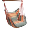 Ripptool COPENHAGUE hallitriibuline. Ripptool on valmistatud käsitööna El Salvadori meistrite poolt, hoides au sees jätkusuutliku ringmajanduse põhimõtteid ja parandades sellega sotsiaalset õiglust ning kohalike inimeste elukvaliteeti. Materjalina on kasutatud ümbertöödeldud kiududest valmistud tekstiili, mis on saadud kohalike rõivatööstuste jääke ära kasutades. Protsess on kemikaalivaba, värvainevaba ning kasutab minimaalselt vett ja energiat. Materjal ei sisalda sünteetilisi kiude ja on 100% orgaaniline. Kaks pehmet patja kuuluvad komplekti. Kiige võib riputada tugeva puuoksa või tala külge. Samuti on võimalik kiige üles riputamiseks kasutada kandejalga. Ripptooli mõõdud on 130x127cm ning kogupikkus on 137cm. Puidust riputuspulga pikkus on 112cm. Ripptooli kandevõime on 120kg. HOOLDUS: toote eluea pikendamiseks kaitske seda ilmastikuolude eest. Ärge jätke kiike pikemaks ajaks päikese või vihma kätte. Kanga ja nööride vastupidavus väheneb UV-kiirguse ja liigniiskuse mõjul ning värvid tuhmuvad. Võimalusel korjake ripptool peale kasutamist kokku ja hoiustage kuivas, hea ventilatsiooniga ruumis. Enne hoiule panekut laske kiigel täielikult ära kuivada. Ripptooli võib pesta käsitsi kuni 40-kraadises vees. Kasutage ainult leebeid pesuvahendeid.