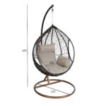 Ripptool DROPLET must. Ripptool pakub ideaalse võimaluse lõõgastumiseks. Toote juurde kuulub mugav ja pehme padi, mis on kaetud halli polüesterkangaga ja täidetud polüesterkiuga. Tooli alumiiniumraam on kaetud musta plastikpunutisega. Tooli istmeosa mõõdud on 105x70x120cm. Terasest alus on kaetud musta pulbervärviga. Aluse mõõdud on D105xH200cm ning toru diameeter on 42mm. Ripptooli mõõdud on 120x120xH200cm ning kandevõime on 100kg. HOOLDUS: ripptooli ei tohiks jätta pikemaks ajaks päikese või vihma kätte, kuna see vähendab toote eluiga. Toodet peaks hoiustama kuivas ja varjulises ruumis. HOIATUS: toode pole mõeldud kasutamiseks tugeva tuule ja vihma korral.