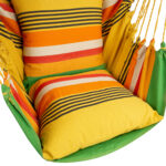 Ripptool JOY rohelisetriibuline. Ripptool on valmistatud käsitööna El Salvadori meistrite poolt, hoides au sees iidset kultuuri ja traditsioonilisi töövõtteid. Puuvillane kangas on kootud käsitelgedel. Värvilahendus on inspireeritud kohalikust loodusest. Polüesternöörid tagavad kiige parema vastupidavuse ja tugevuse. Kaks pehmet patja kuuluvad komplekti. Kiige võib riputada tugeva puuoksa või tala külge. Samuti on võimalik kiige üles riputamiseks kasutada kandejalga. Ripptooli mõõdud on 130x127cm ning kogupikkus on 137cm. Puidust riputuspulga pikkus on 112cm. Ripptooli kandevõime on 140kg. HOOLDUS: toote eluea pikendamiseks kaitske seda ilmastikuolude eest. Kanga ja nööride vastupidavus väheneb UV-kiirguse ja liigniiskuse mõjul ning värvid tuhmuvad. Võimalusel pange rippkiik alati peale kasutamist hoiule kuiva ja hea ventilatsiooniga ruumi. Enne hoiule panekut laske kiigel täielikult ära kuivada. Kiike võib pesta käsitsi kuni 40° vees. Kasutage ainult leebeid pesuvahendeid.