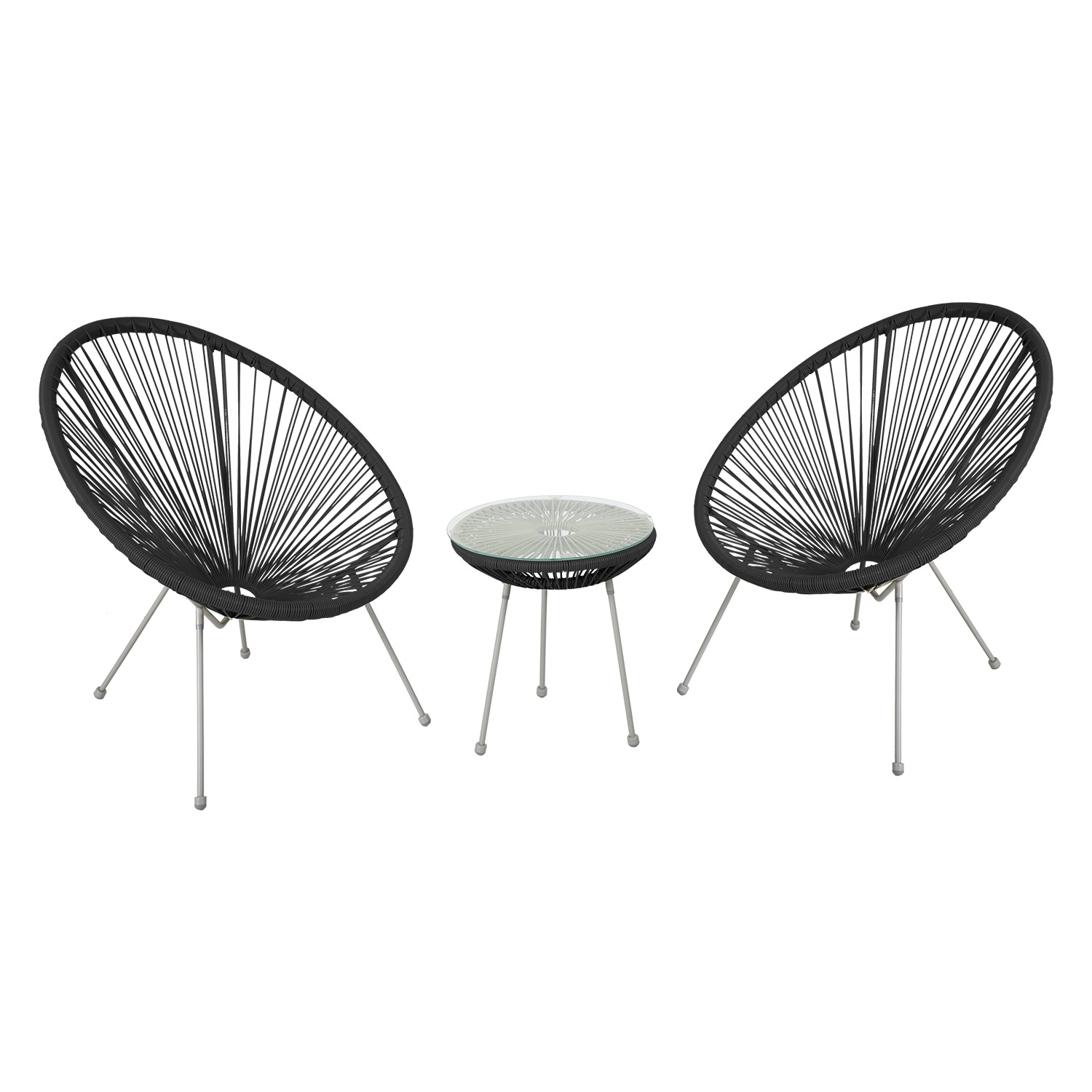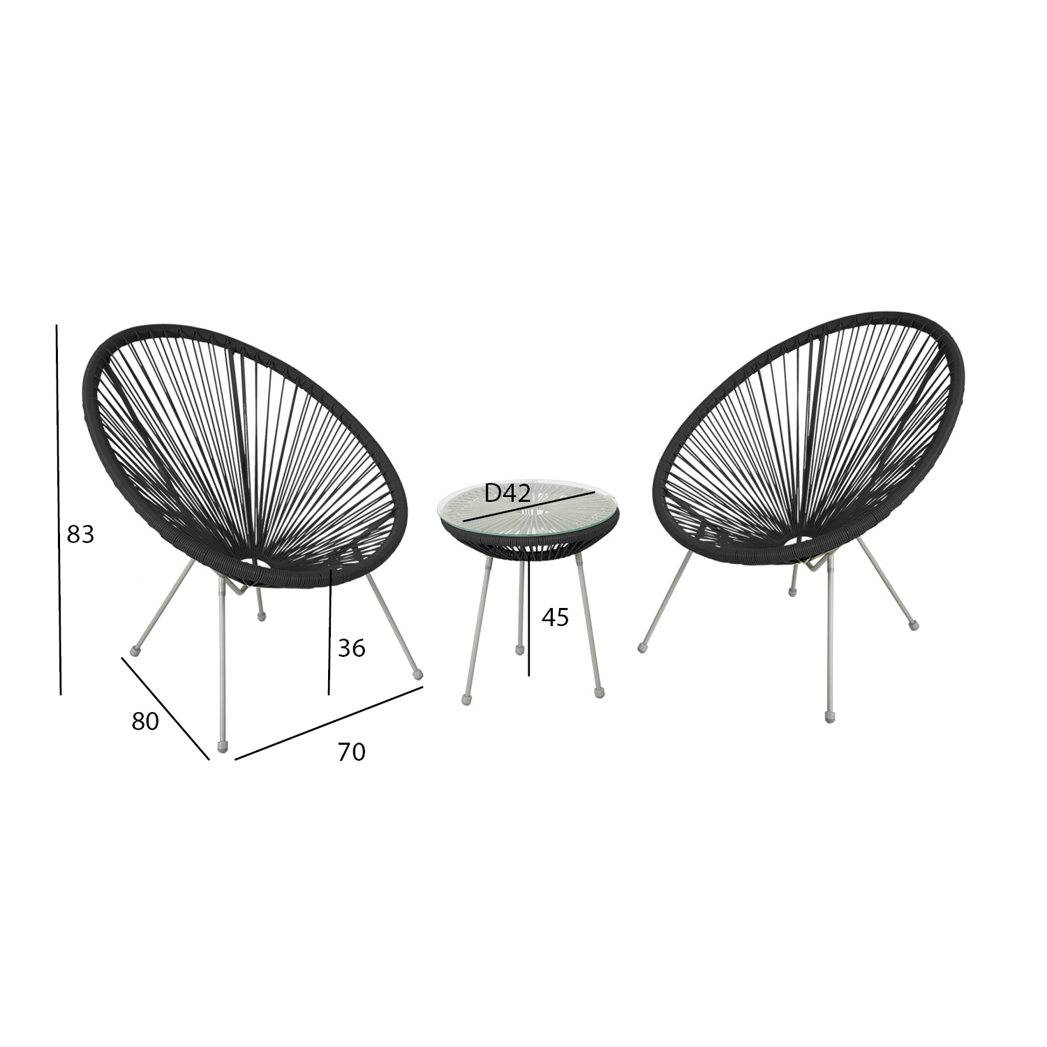 Rõdukomplekt COMO must, laud D42xH45cm, 2 tooli 70x80xH36/83cm, terasraam