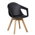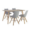 Söögilauakomplekt HELENA 4-tooliga. Laua mõõdud on D100xH75cm. Lauaplaat: 18mm MDF kaetud naturaalse tammespooniga, lakitud. Laual on tammepuidust jalad metallist tugevdustega. Toolil on mugava vormiga must plastikust iste. Polsterdatud istmepõhi on kaetud musta kunstnahaga. Heledad tammepuidust jalad. Tooli üldmõõdud on 58x57xH82cm. istme kõrgus 42cm, istme laius 40cm, istme sügavus 45cm. Kaalupiirang 100kg.