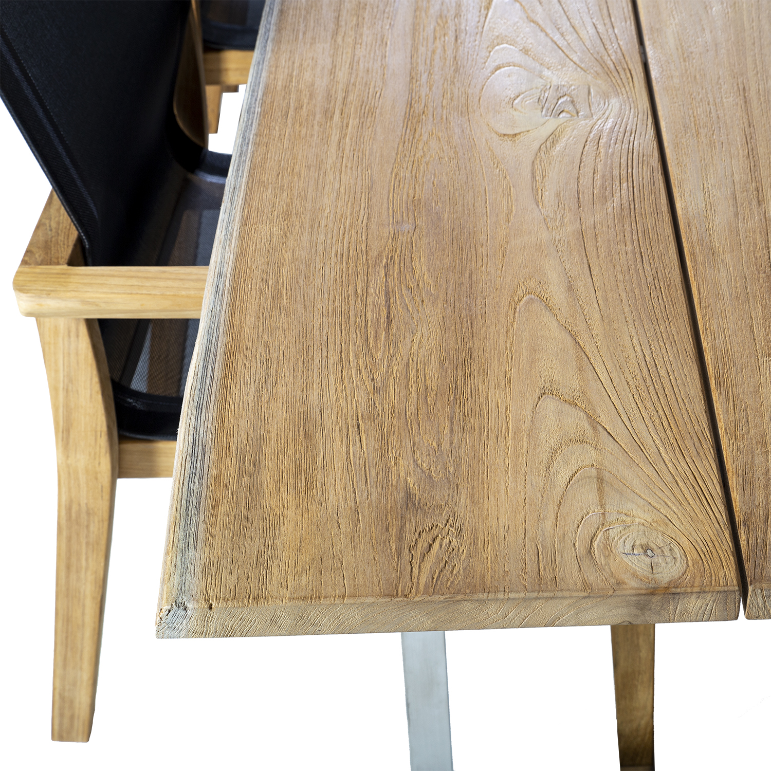 Söögilauakomplekt NAUTICA laud ja 8 tooli. Laua mõõdud on 280x100xH76cm. Kolmest paneelist koosnev servamata äärtega lauaplaat on valmistatud A-klassi tiikpuust. Peenlihvitud rustik viimistlusega pind on täielikult naturaalne oma looduslikus ilus ning seda ei ole õlitatud ega muul viisil keemiliselt töödeldud. Laua jalad ja alusraam on valmistatud roostevabast terasest. A-klassi tiikpuu on täiuslik looduslik materjal luksusliku õuemööbli valmistamiseks. Puidu süü on tihe ja ühtlane ning kauni sametise läikega, värvus on kuldse nisu-ja meetoonides. Tänu suurele looduslike õlide sisaldusele on tiikpuu väga vastupidav niiskuse ning puidukahjurite suhtes. Tiikpuu talub väga hästi erinevaid ilmastikutingimusi ja säilitab oma suurepärase välimuse ja parimad omadused pikkadeks aastateks. Päikesevalguse ja niiskuse mõjul muutub laua pind aja jooksul kaunilt hõbehalliks. Selline värvimuutus on loomulik ning ei mõjuta puidu kvaliteeti. Eksklusiivne tiikpuust laud sobib hästi ka siseruumides kasutamiseks. Tooli raam on valmistatud peenlihvitud, õlitamata tiikpuust. Iste ja seljatugi on valmistatud mustast batylinest. Batyline materjali kõige olulisem omadus on selle nõtkus ja optimaalne istumismugavus. Lisaks erakordsele mehaanilisele tugevusele on materjalil kõrge keemiline vastupidavus. Sünteetiline kate tagab ülikõrge ilmastiku- ja UV-kindluse. Batyline ei ima niiskust, tänu sellele kuivab materjal väga kiiresti ja on maksimaalselt pleki- ja hallituskindel ning lihtsalt puhastatav. Tooli üldmõõdud on 64x65xH90cm. Istme laius 47,5cm, istme sügavus 48cm, istme kõrgus 43cm. Seljatoe kõrgus 48cm, käetoe kõrgus maast 66cm. Kaalupiirang 120kg. Toolid on virnastatavad. HOOLDUS: puhastage mööblit regulaarselt, kaitske liigniiskuse ja UV kiirguse eest. Puidust pindade värskendamiseks võib need soovikorral kergelt üle lihvida. HOIUSTAMINE: suvehooaja lõppedes soovitame aiamööblit hoiustada siseruumides. Puhastage ja kuivatage mööbel enne hoiule panekut. Kasutage hoiustamiseks kuiva ning hea ventilatsiooniga ruumi.