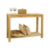 Abilaud SAMIRA 97x35xH80,5cm, antiikvalge/naturaalne. Laua jalad ja alusraam on valmistatud saarepuidust ja viimistletud antiikvalge värviga. MDF lauaplaat on kaetud naturaalse paulownia spooniga. Vaheriiulid on valmistatud täispuidust. Laual on üks väike ilma siinideta sahtel. Sahtli käepide on metallist.