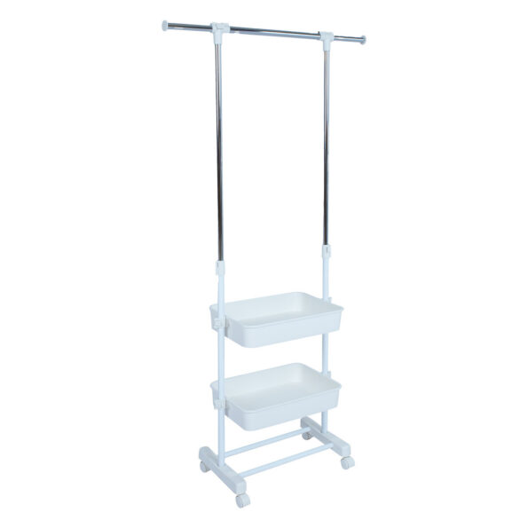Stange FORD 3-sahtliga 94x42xH93,5-168cm, hõbedane/kroom. Ratastel liikuv, reguleeritava kõrgusega stange on lihtne ja praktiline lahendus riiete ja jalanõude organiseerimiseks. Stange alusraam on valmistatud hõbehallist plastikust, küljepostid ja riputustoru on valmistatud kroomitud terasest. Stange alumises osas on 3 plastikust sahtlit 36x25xH12cm ja metallist riiul. Kandevõime 15kg.