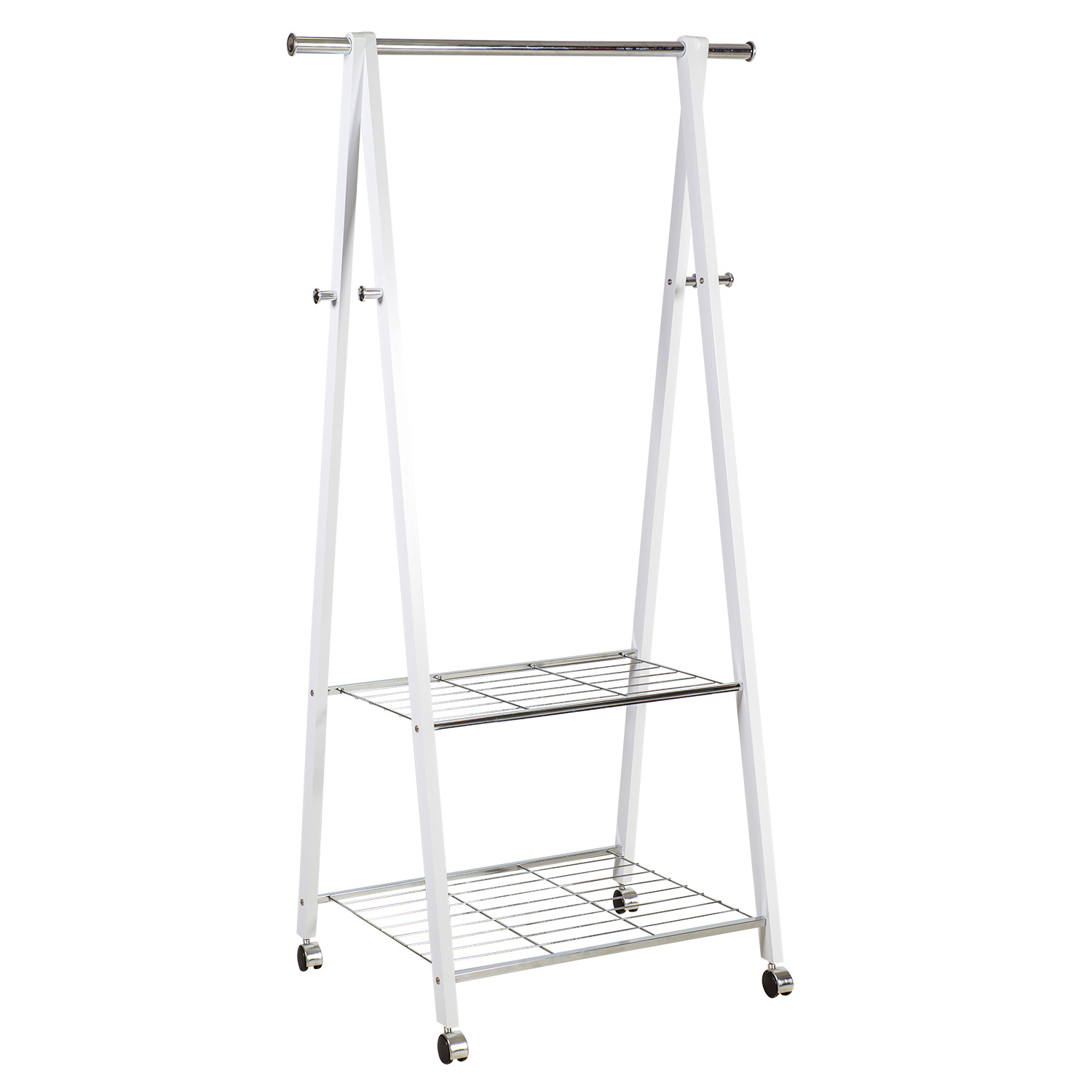 Stange FOREST 2-riiuli ja 4-nagiga 85x52xH152cm, materjal: männipuit/teras, värvus: valge/kroom. Kaalupiirang: stange 10kg, riiulid 8kg.