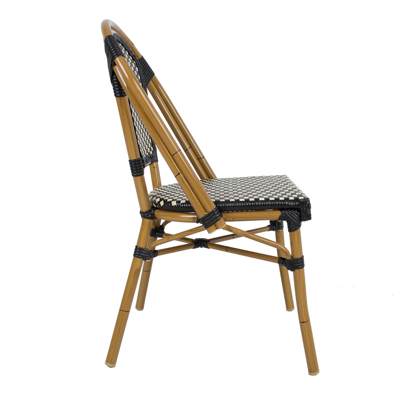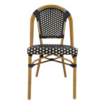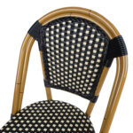 Tool BAMBUS 45x52xH89cm, mustaruuduline. Prantsuse bistroo stiilist inspireeritud mugav ja vastupidav tool on suurepärane valik koduaeda või kohvikusse. Tool sobib hästi ka siseruumides kasutamiseks. Tooli raam on valmistatud alumiiniumist ja viimistletud bambust meenutava bee˛i pulbervärviga. Alumiiniumtoru mõõdud on D28x1,5mm. Iste ja seljatugi on kaetud musta-helebee˛i ruudulise plastikpunutisega. Tooli üldmõõdud on 45x52xH89cm, istme laius 40cm, istme sügavus 41cm, istme kõrgus 46cm, seljatoe kõrgus 47cm. Kaalupiirang 120kg. Toolid on virnastatavavad ning nende hoiustamine on lihtne ja ruumisäästev. Toode on muutlikes ilmastikutingimustes hästi vastupidav ja lihtsalt hooldatav.