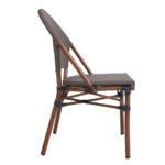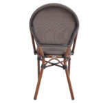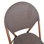 Tool BAMBUS 45x55xH86cm, pruun. Prantsuse bistroo stiilist inspireeritud mugav ja vastupidav tool on suurepärane valik koduaeda või kohvikusse. Tool sobib hästi ka siseruumides kasutamiseks. Tooli raam on valmistatud alumiiniumist ja viimistletud bambust meenutava pruuni pulbervärviga. Alumiiniumtoru mõõdud on D28x1,5mm. Iste ja seljatugi on kaetud pruuni textilenega, mis laseb hästi õhku läbi ja kuivab kiiresti. Tooli üldmõõdud on 45x55xH86cm, istme laius 40cm, istme sügavus 40cm, istme kõrgus 45cm, seljatoe kõrgus 45cm. Kaalupiirang 120kg. Toolid on virnastatavavad ning nende hoiustamine on lihtne ja ruumisäästev. Toode on muutlikes ilmastikutingimustes hästi vastupidav ja lihtsalt hooldatav.