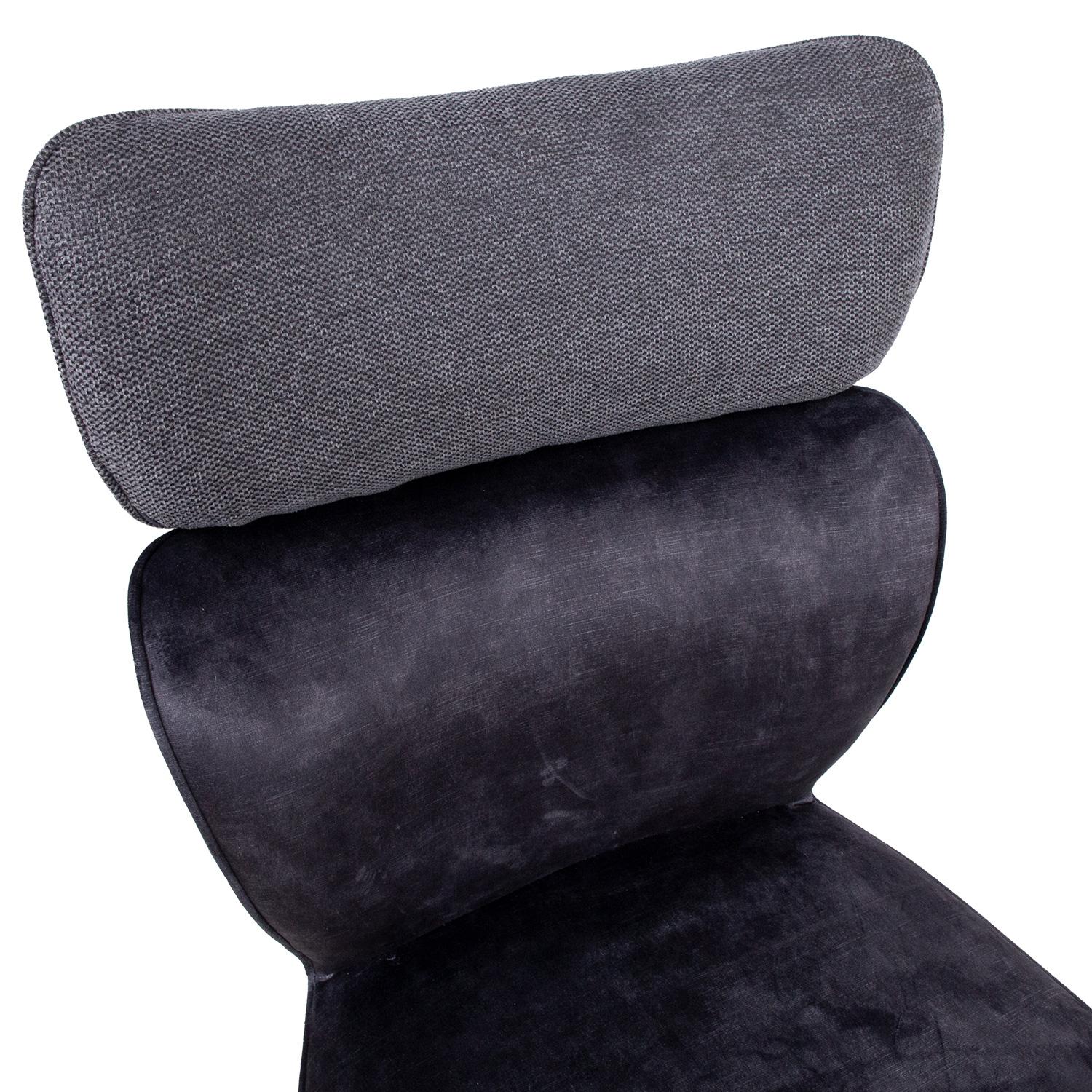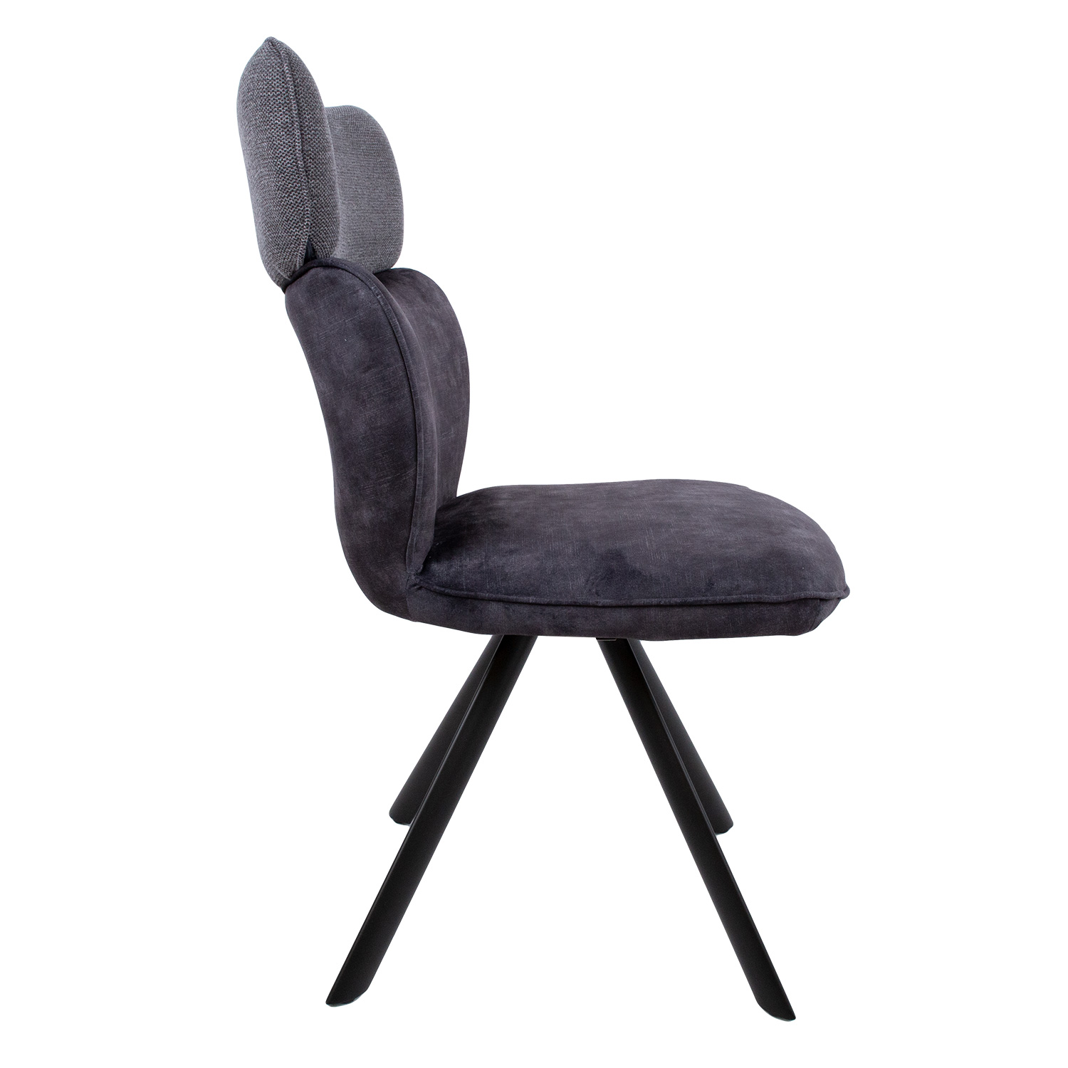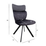 Tool EDDY 49x55xH89cm, tumehall samet. Söögitooli mugava vormiga iste on kergelt polsterdatud ja kaetud polüesterkangaga. Kasutatud on toon-toonis, kuid erineva pinna struktuuriga kangaid. Pulbervärvitud mustad metallist jalad. Tooli istmekõrgus 48cm, istme laius 49cm, istme sügavus 42cm. Seljatoe kõrgus 47cm. Kaalupiirang 120kg.